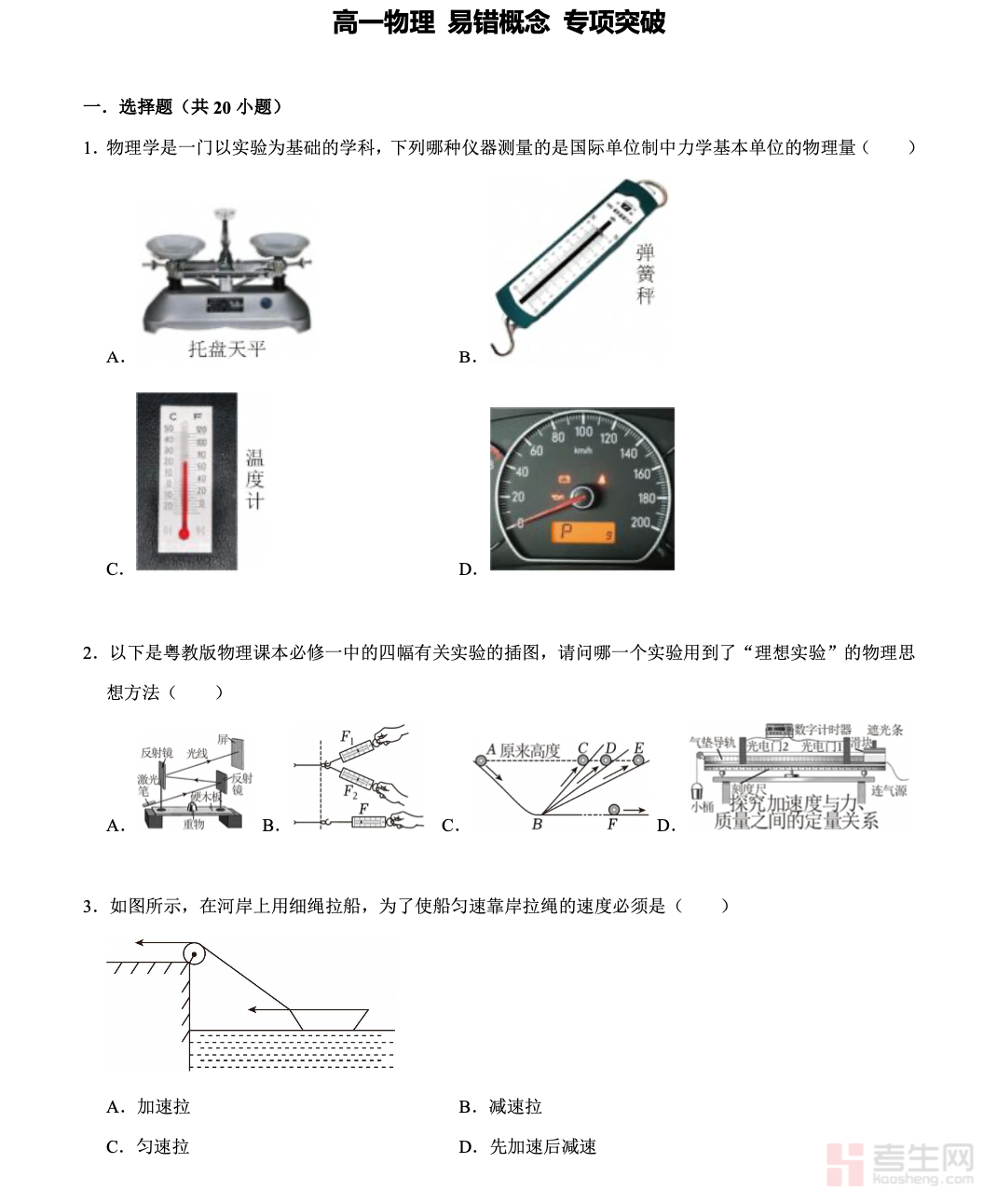 适配高一物理同步学习与考试备考需求,聚焦全册核心易错概念,精准对接校内考高频易混点,通过概念辨析、误区拆解、典型例题巩固,帮学生厘清认知偏差、规避解题失误,是夯实物理基础的优质专项资料。