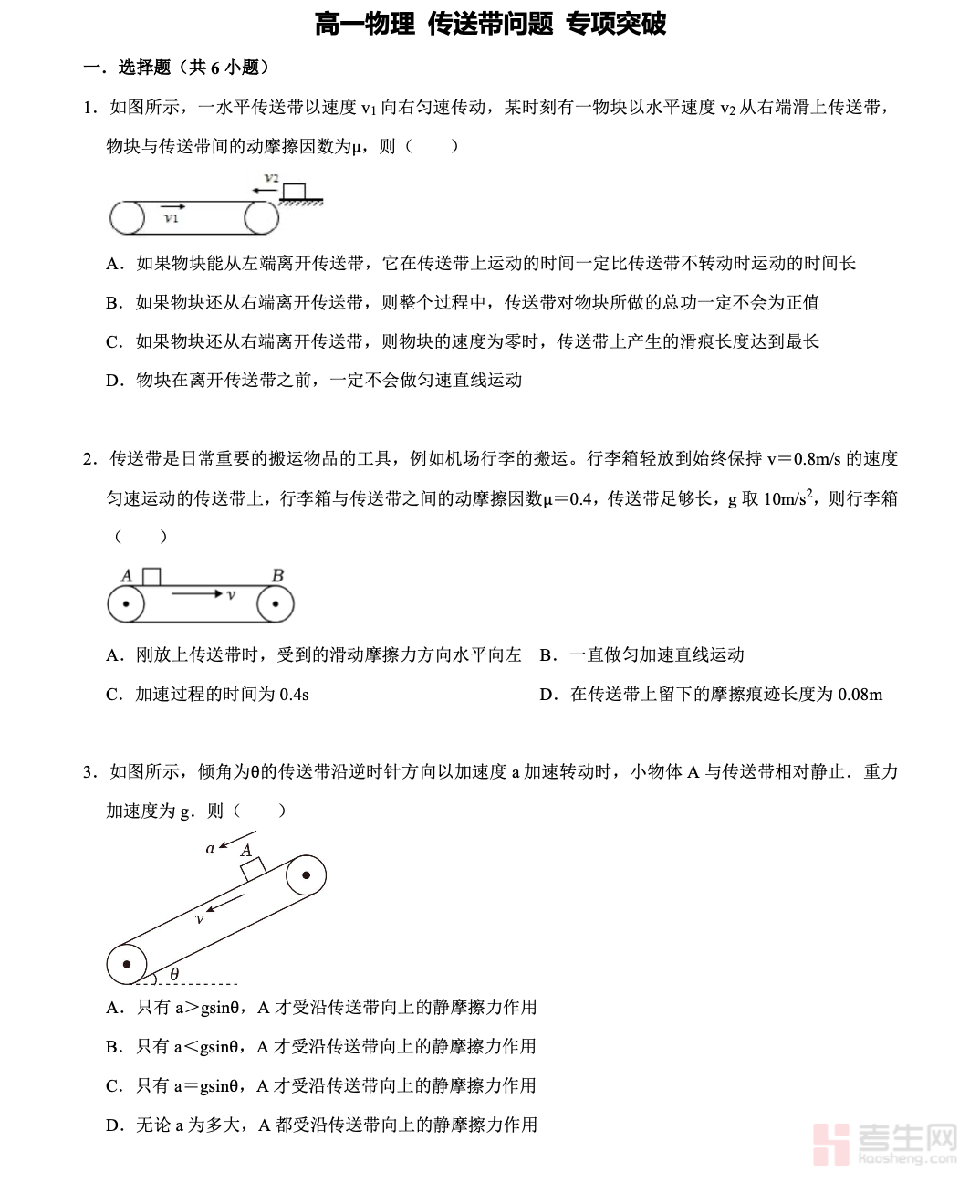 适配高一物理同步学习与考试备考需求,聚焦传送带问题这一高频难点题型,精准拆解题型考法、解题思路与易错点,是突破该专项、提升解题能力的优质资料。