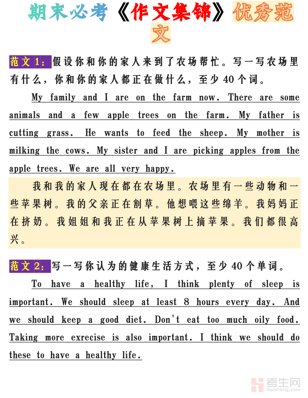 适配六年级英语上册期末备考需求,聚焦期末必考作文题型打造优质范文集锦,是提升英语写作能力、冲刺期末高分的实用学习资料。本资料紧扣六年级上册英语教学重点与期末考情,精选高频写作主题,每篇范文均贴合教材知识点,句式规范、词汇地道,兼顾书写示范与表达技巧,同时标注核心句型、加分短语和写作思路。针对写作无话可写、句式单一、语法错误等常见问题,为学生提供可借鉴的写作模板,内容难度贴合六年级学生水平,条理清晰。适配学生日常仿写、考前背诵、素材积累,也可作为家长辅导、教师课堂写作教学的辅助资料,助力夯实写作基础,轻松应对期末英语写作题。