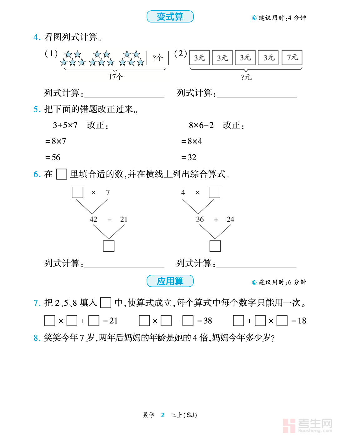 适配苏教版三年级上册小学生 25 秋数学计算学习需求,打造星级活页计算练习资料,贴合校内秋季教学进度,是夯实三年级计算基础、提升运算能力的优质练习资料。本资料紧扣苏教版教材核心考点,聚焦三年级上册计算重难点,题型涵盖口算、笔算、递等式计算等常考题型,活页设计拆分合理、取用便捷,每日定量练习适配孩子学习节奏。内容按星级分层,难度循序渐进,针对性解决计算马虎、算理不扎实、运算速度慢等问题,适配课堂练习、课后巩固、家庭作业等场景,助力培养规范计算习惯,筑牢小学数学运算根基。