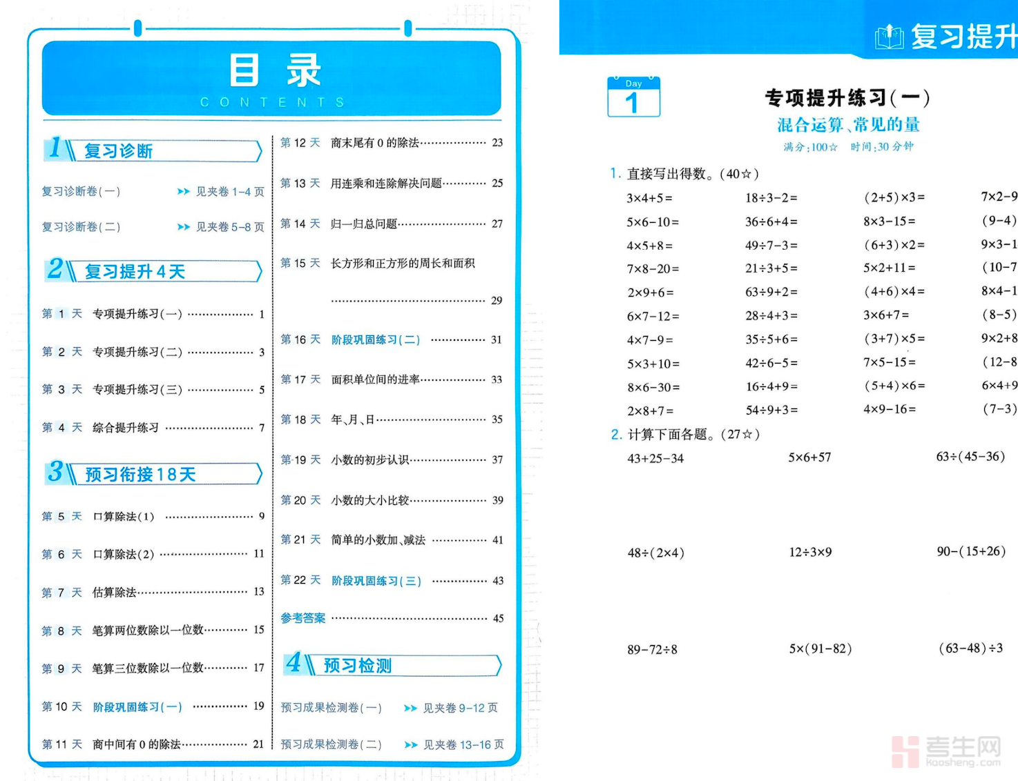 适配三年级学生人教版数学寒假学习提升需求,打造计算 + 思维双核心专项练习册,精准衔接秋学期知识重难点与春学期预习要点,是寒假夯实计算基础、培养数学逻辑思维的优质学习资料。本资料紧扣三年级数学核心考点,贴合人教版教材考法与教学节奏,融合计算练习与思维训练设计,覆盖口算、笔算、脱式计算、混合运算及趣味思维应用题,难度循序渐进,兼顾基础巩固与能力进阶。针对性解决计算粗心、运算步骤不规范、思维拓展不足、假期知识断层等问题,适配寒假每日练习、自主刷题、错题复盘等场景,助力孩子同步提升计算能力与逻辑思维,为新学期数学学习筑牢核心根基。