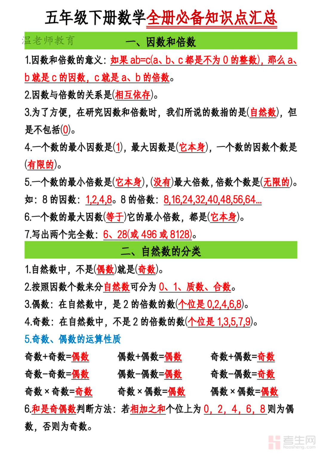 适配五年级学生寒假数学知识梳理、基础巩固与新学期预习需求,打造专属五年级下册数学知识汇总资料,是假期高效梳理知识、查漏补缺的优质学习资料。本资料紧扣五年级下册数学核心知识点,按教材单元体系整合编排,全覆盖因数与倍数、长方体和正方体、分数的意义与性质、分数加减法、图形的运动等核心模块,精准提炼重点考点、公式定理与解题方法,同时标注易错点和高频考点,形成系统化知识框架。内容条理清晰、重难点突出,兼顾知识复盘与预习衔接,针对性解决知识零散、重难点模糊、易错点反复出错等问题,适配居家自主复习、亲子伴学、课前预习等场景,助力夯实五年级数学基础,为新学期学习做好衔接准备。