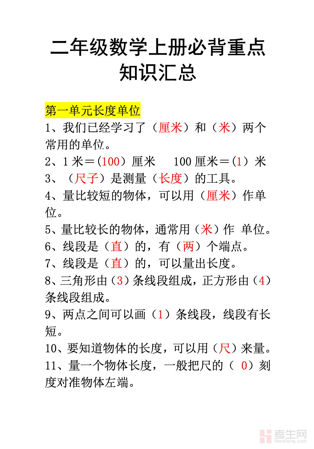 适配二年级学生寒假数学知识梳理、基础巩固与查漏补缺需求,打造专属二年级上册数学知识汇总资料,是假期高效复盘课内知识、夯实低年级数学基础的优质学习资料。本资料紧扣二年级上册数学核心知识点,按教材单元体系有序整合,全覆盖 100 以内加减法、表内乘法、长度单位认识、角的初步认识、观察物体等核心模块,精准提炼重点概念、计算法则与基础解题方法,同步标注高频易错点和基础题型解法,搭建简单易懂的系统化知识框架。内容条理清晰、重难点突出,兼顾知识复盘与基础巩固,针对性解决知识零散、计算不熟练、概念模糊等问题,适配居家自主复习、亲子伴学、假期查漏补缺等场景,助力筑牢二年级数学基础,为后续学习做好衔接。