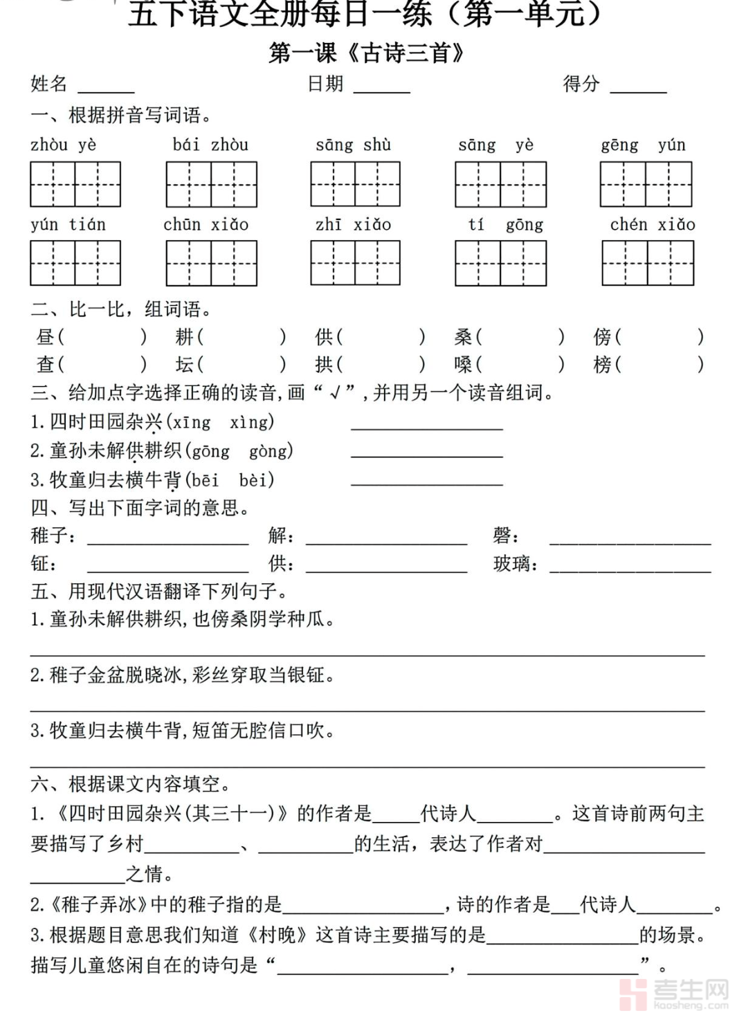 适配五年级学生寒假语文每日打卡、基础巩固与能力进阶需求,打造贴合高年级学习节奏的寒假语文每日练习资料,是假期稳步夯实语文基础、提升读写综合能力的优质练习素材。本资料紧扣五年级语文核心知识点,按寒假时长科学规划每日练习内容,覆盖生字词积累、古诗文默写、词句赏析运用、阅读理解、习作片段练笔等核心模块,每日练习量适中,题型贴合课内重点与高频考点,针对高年级读写薄弱、答题不规范等问题设计专项练习。内容编排循序渐进、难易适配,兼顾基础巩固与能力提升,适配居家每日打卡、自主练习等场景,助力孩子在假期稳步提升语文能力,筑牢后续学习基础。