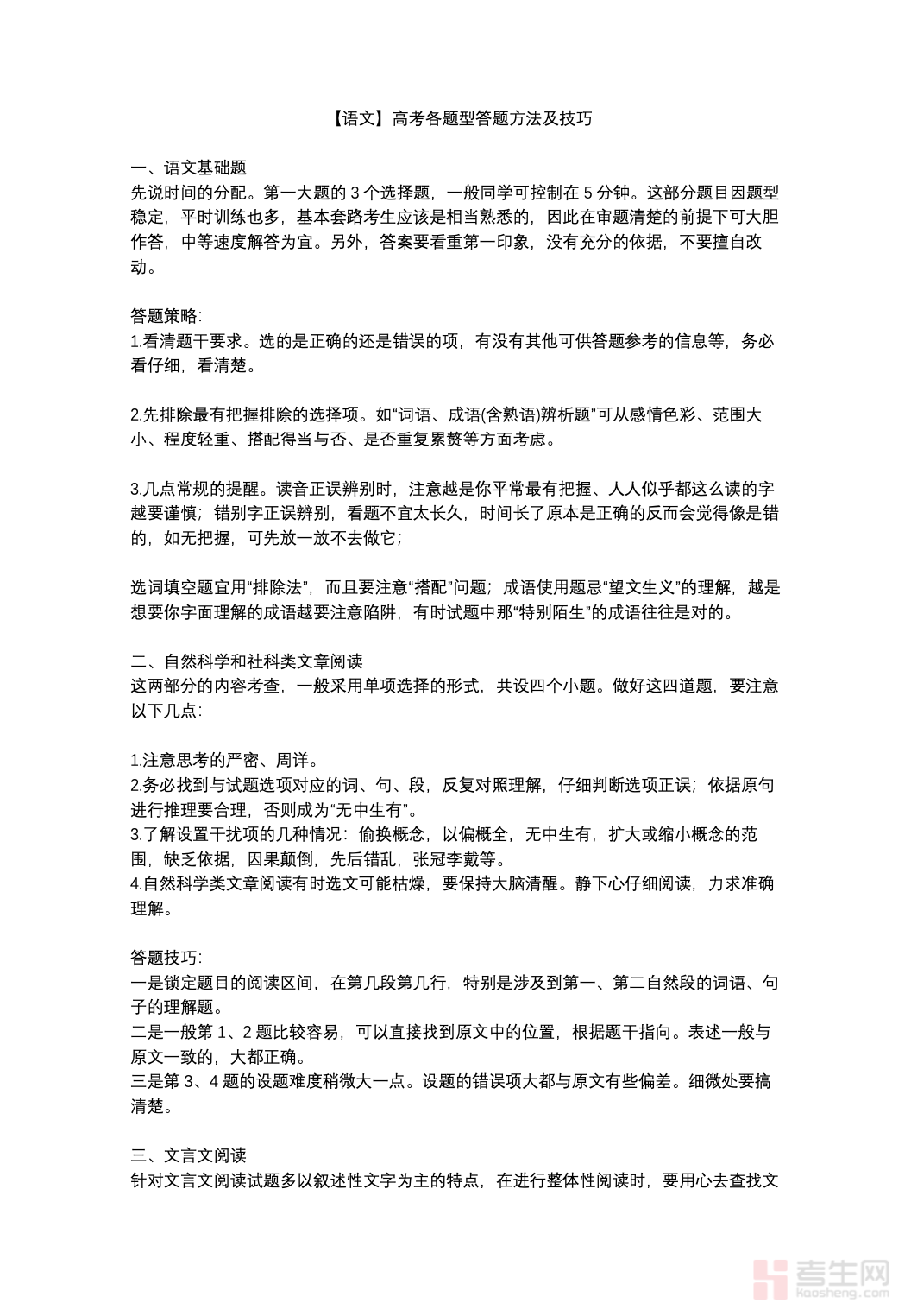 适配高考学子语文备考提分、答题能力提升需求,是专为高考打造的语文各题型解题攻略资料,助力考生精准掌握答题方法、梳理解题思路,高效突破备考难点。本资料紧扣高考语文考纲与命题趋势,全面覆盖现代文阅读、古诗文阅读、语言文字运用、写作等所有核心题型,精准提炼各题型审题关键、答题模板、得分要点与避坑技巧,针对高考高频考点和易失分点做专项拆解。内容条理清晰、实用性强,方法简洁易懂且适配考场作答节奏,兼顾基础答题规范与高阶提分技巧,适配高考一轮、二轮备考及冲刺阶段使用,助力考生吃透答题逻辑,提升考场作答效率与准确率。