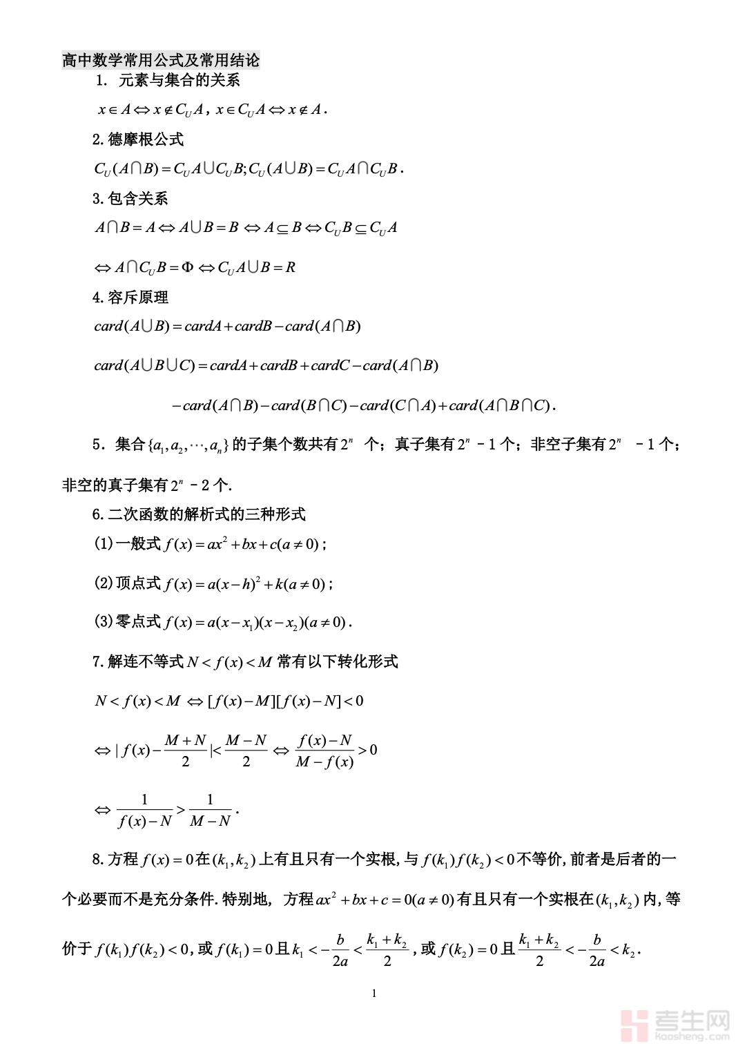 适配高中学生数学学习、备考刷题与考点梳理需求,是专为高中阶段打造的全品类数学公式工具书,助力学子快速查阅公式、夯实基础功底,高效应对日常学习与各类考试。本资料紧扣高中数学课标与高考考纲,全面梳理集合与函数、立体几何、解析几何、数列、三角函数、导数、概率统计等全模块核心公式、推论及变形形式,精准标注公式适用条件、常用解题场景与易错注意点。内容编排按模块分类、条理清晰,完整版无遗漏覆盖高中全学段公式,便于日常查阅、考前识记与刷题速查,针对性解决公式记混、遗忘、用错等问题,适配高一高二同步学习、高三一轮二轮备考及考前冲刺,助力构建系统的数学公式体系,提升解题效率。