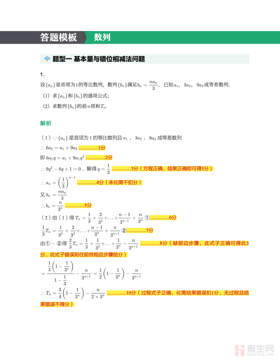 适配高中学生数列模块学习、刷题提分及高考备考需求,是专为数列题型打造的专项答题攻略资料,助力学子吃透题型逻辑、掌握规范作答思路,高效突破数列解题难点。本资料紧扣高中数学课标与高考考纲,全面覆盖等差数列、等比数列、通项公式求解、前 n 项和计算、数列综合证明等高频题型,精准提炼各题型审题关键、解题步骤、公式运用技巧及规范答题框架,针对通项求解误区、求和方法误用、步骤书写不规范等痛点做专项拆解。内容条理清晰、实用性强,模板适配考场作答节奏,兼顾基础解题规范与高阶解题技巧,适配日常刷题、专题复习及高考冲刺,助力快速提升数列题型作答效率与准确率。