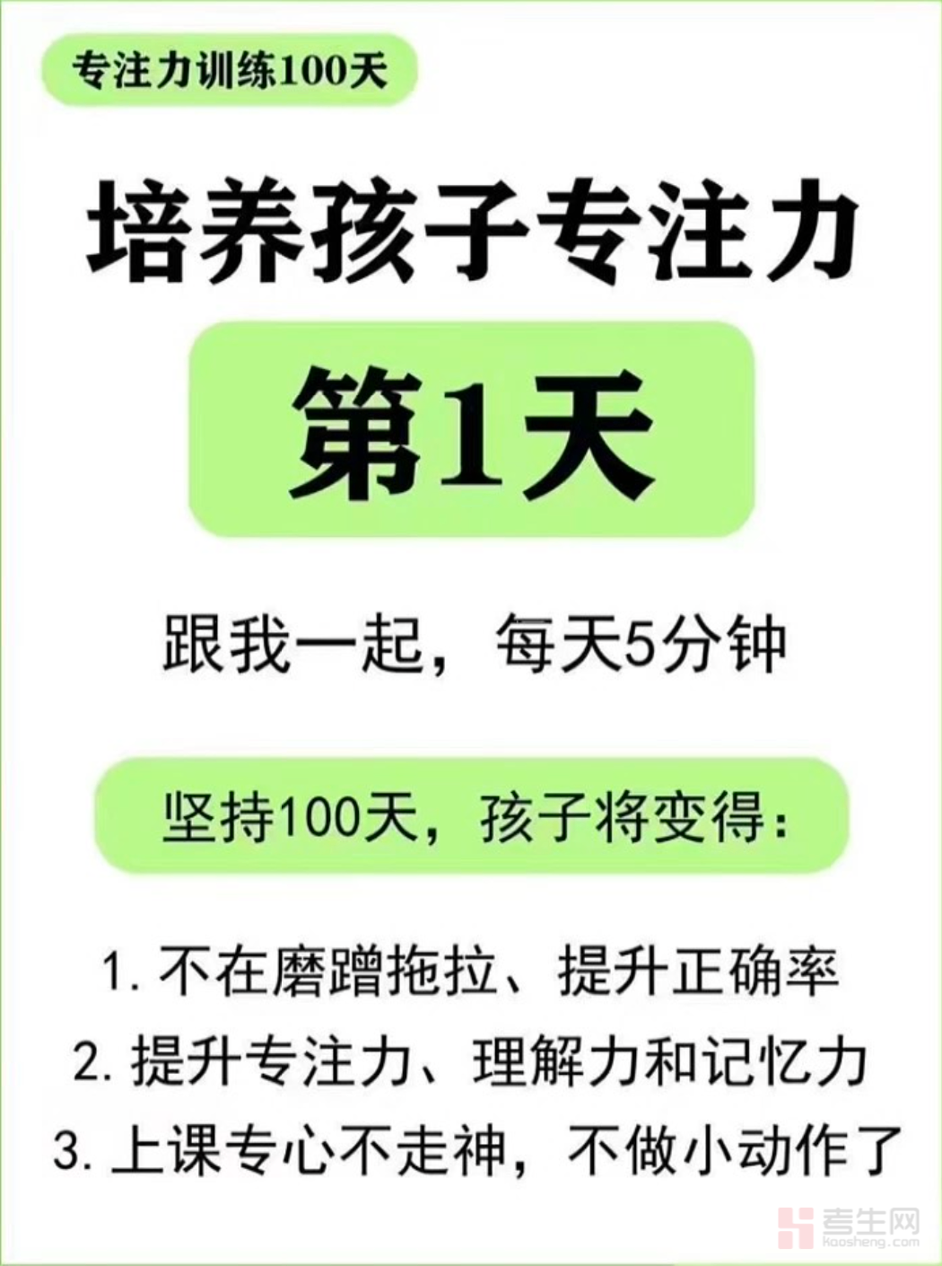 适配学生群体提升专注力、改善学习效率的核心需求,是一套科学系统的专注力专项训练资料,助力逐步培养专注习惯,解决学习中分心、效率低等问题。本训练以 100 天为周期,遵循循序渐进的训练原则,设计了贴合学习场景的专注力训练内容,涵盖视觉专注、听觉专注、思维专注等多维度训练题型,搭配每日训练计划与打卡要求,训练目标明确、步骤清晰。内容难度逐步提升,兼顾趣味性与实用性,无需复杂工具,可直接融入日常学习生活,适配中小学生及高中生日常训练,助力有效提升专注时长与学习效率,养成良好的学习习惯。