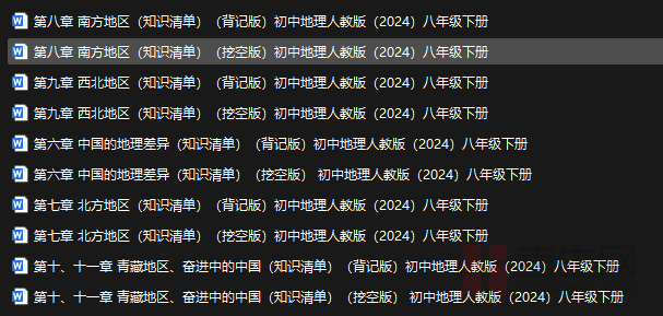 初中地理人教版(2024)八年级下册 知识清单(背记版+挖空版)十个文档内容简介