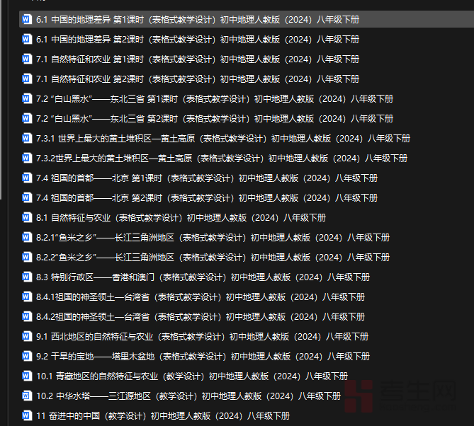 本套教学设计共21个,含18个表格式教学设计与3个完整教学设计,适配初中地理人教版(2024)八年级下册全册教学。设计思路立足
