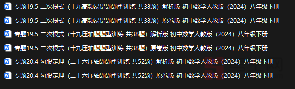 初中数学人教版(2024)八年级下册 高频易错题题型训练 六个文档内容简介