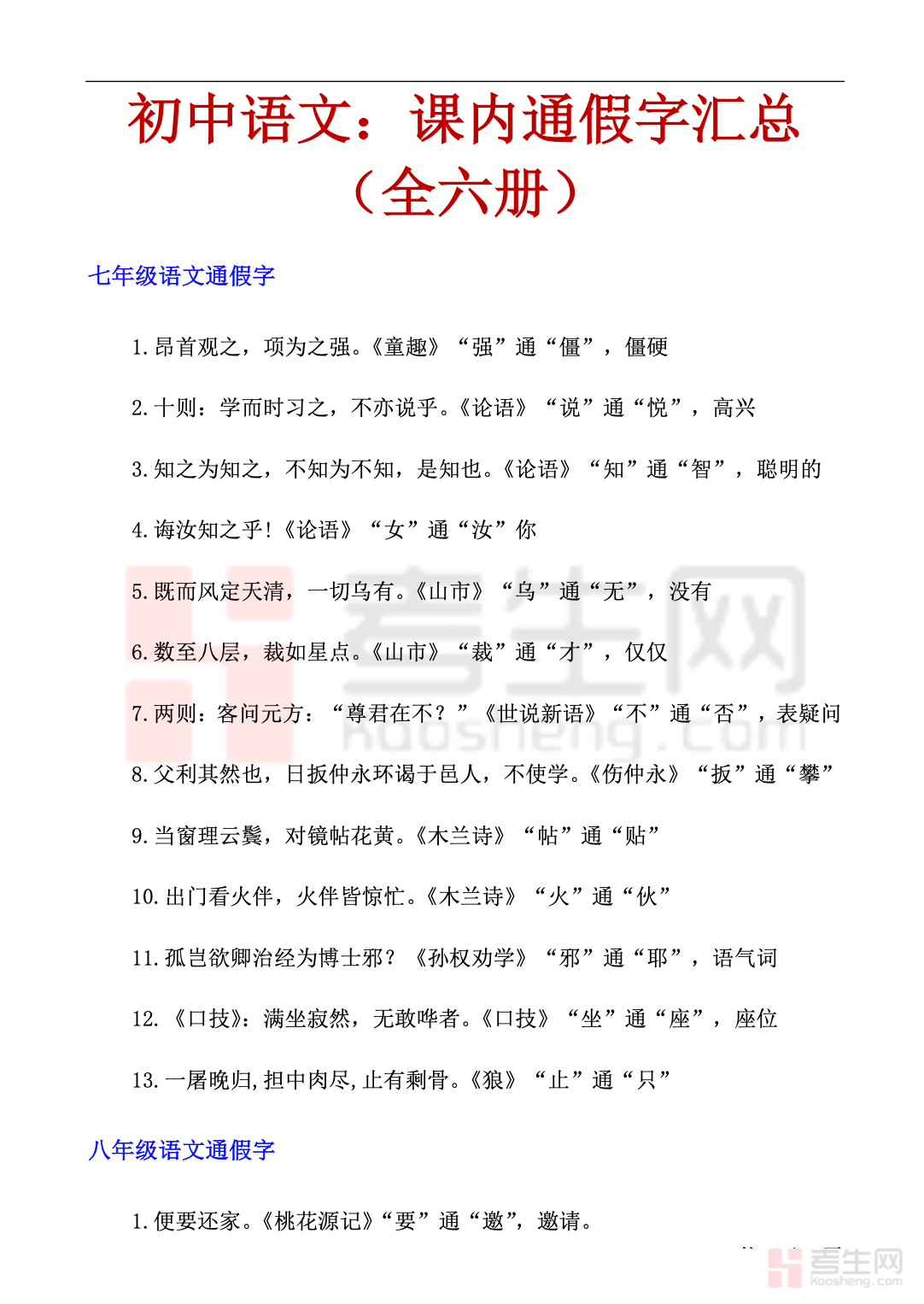 适配初中学生文言文学习、字词积累与中考备考需求,是专为通假字专项整理的实用资料,助力扫清文言阅读障碍。本资料严格依据初中语文教材,全面汇总课内常见通假字,清晰标注本字、读音、含义及对应课文原句,内容系统完整、一目了然。按年级或课文顺序分类整理,重点突出、方便查阅,针对性解决通假字识别困难、翻译出错、考试易丢分等问题。适合日常学习、单元复习、考前速记使用,帮助学生扎实掌握课内通假字知识,提升文言文翻译与阅读理解能力,从容应对各类语文考试。
