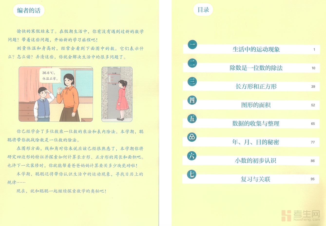 本书是依据国家课程标准编写的人教版三年级下册数学教材,贴合小学三年级学生的认知特点与学习节奏,内容系统全面、难易适中。全书围绕除数是一位数的除法、两位数乘两位数、面积、年、月、日、小数的初步认识、位置与方向等重点知识展开,图文并茂、贴近生活,注重基础知识理解与实际运用。教材由浅入深、循序渐进,兼顾计算能力、逻辑思维与空间观念的培养,帮助学生扎实掌握数学技能。内容规范严谨,适合课堂教学、课前预习及课后复习,助力学生稳步提升数学素养,为后续学习打下坚实基础。