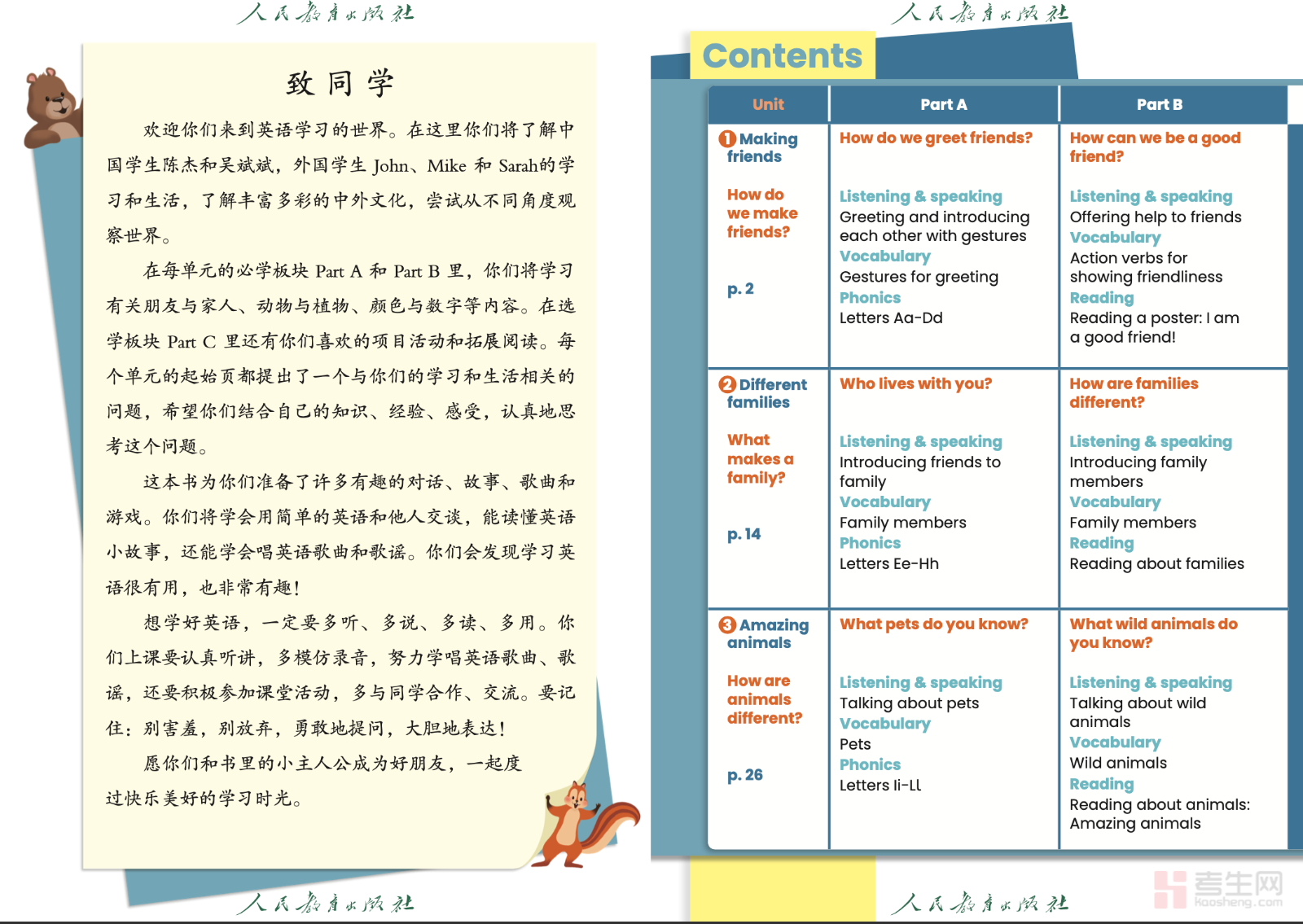 本书是依据国家义务教育英语课程标准编写的小学三年级上册官方教材,采用人教 PEP 版体系,适合英语起步阶段使用。教材围绕问候、自我介绍、文具、颜色、动物、食物等贴近小学生生活的主题展开,内容浅显易懂、生动有趣。全书设置多个学习单元与复习单元,重点学习 26 个英文字母、基础单词、日常交际用语和简单对话,搭配听力、歌谣、对话、认读等多种趣味形式,注重听说先行、读写同步,帮助孩子轻松入门英语。编排循序渐进,符合低年级认知规律,便于课堂教学与课后练习,助力学生培养英语学习兴趣,打下扎实的英语基础。