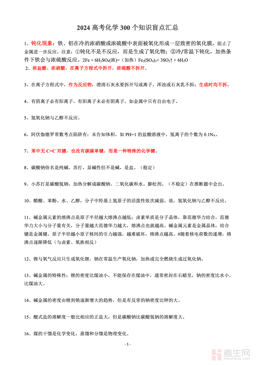本文档专为高中生整理,聚焦高中化学学习中的高频易错点、易混淆点及隐蔽考点,精准汇总 300 个核心知识盲点,覆盖化学必修、选修全模块。内容避开基础冗余,直击学生常错、易漏、理解模糊的知识点,结合教材重点与高考高频考点,逐一梳理解析,条理清晰、针对性极强。无需盲目刷题,可帮助学生快速排查知识漏洞、规避答题误区,夯实化学基础,理清知识逻辑。适用于日常纠错、单元复习及考前突击,高效提升知识运用与应试能力,是高中化学提分备考的实用必备资料。