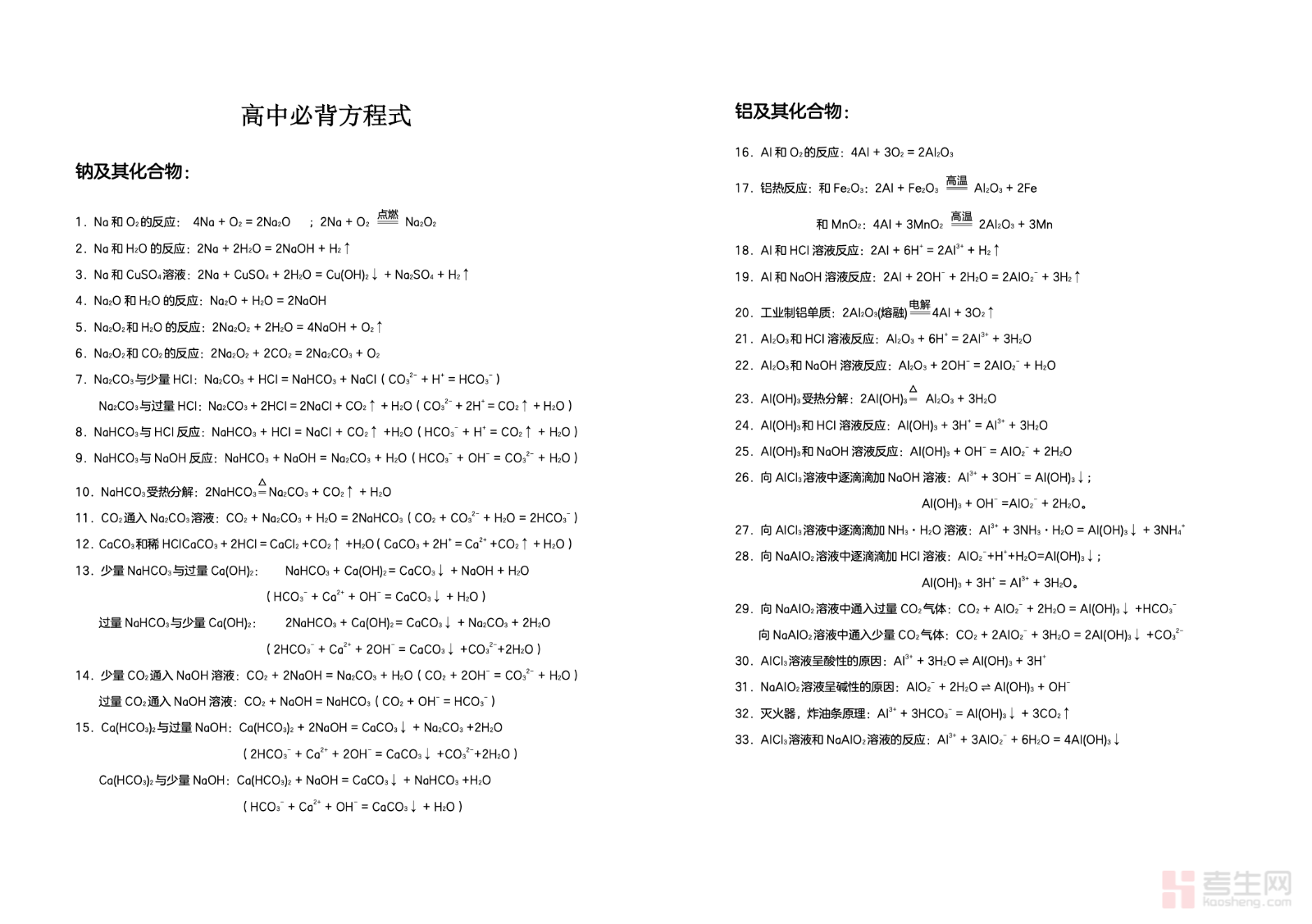 本文档是适配高中化学学习与高考备考的核心必背资料,严格依据最新考纲及教材要求编撰,全面覆盖无机反应、有机反应、离子反应、氧化还原反应等高频考点内容。资料聚焦常考方程式、反应条件、配平要点及现象规律,梳理重点反应、易错易混方程式,摒弃冗余内容,条理清晰、重点突出。贴合高考核心素养考查导向,兼顾基础识记与应试应用,适配高一高二同步积累、高三系统复习及考前突击巩固,助力学生快速夯实化学基础,熟练掌握反应规律,提升解题速度与准确率,是高中化学备考的必备实用资料。