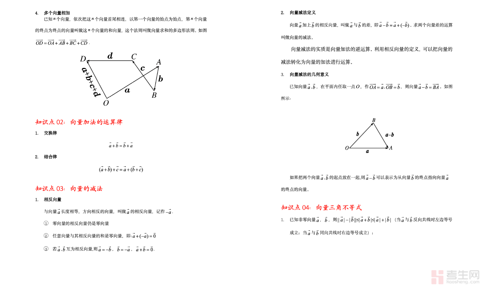 本文档是适配高中数学平面向量学习的专项核心资料,严格依据考纲及教材要求编撰,聚焦平面向量加减法这一基础核心模块,全面覆盖向量加法、减法的定义法则、几何意义、作图方法及综合运算题型。资料提炼运算核心要点、解题步骤、几何应用技巧及易错易混点,摒弃冗余内容,条理清晰、重点突出,兼顾基础理解与题型应用。贴合高中数学学习与备考要求,适配高一同步学习、高二专题巩固、高三复习查漏补缺,助力学生吃透平面向量加减法基本运算,夯实向量知识基础,提升解题准确率与运算能力,是高中数学平面向量学习的实用专项资料。