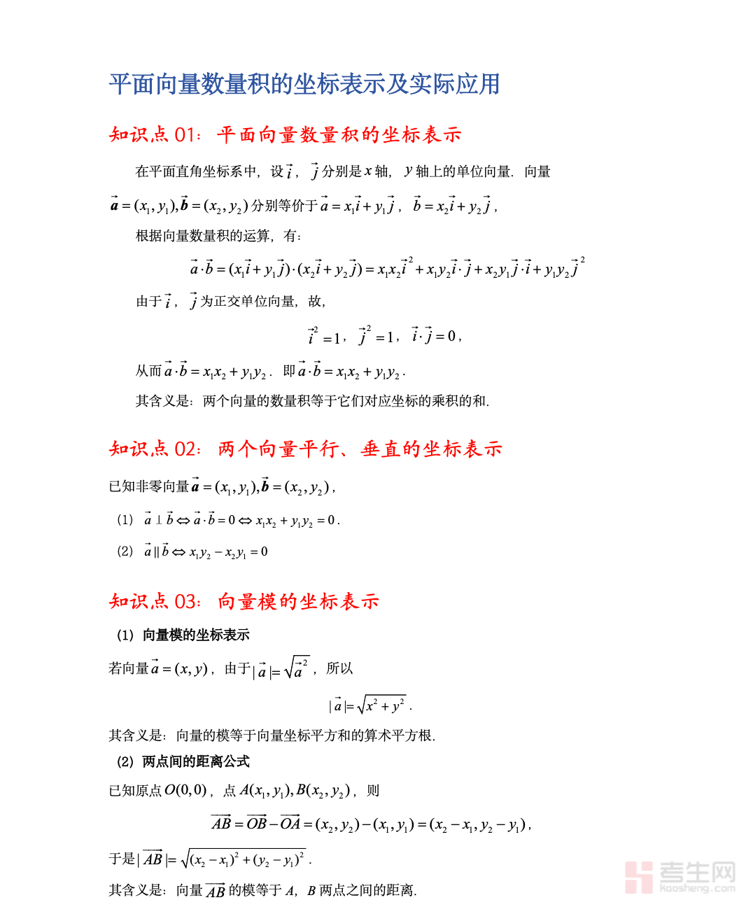 本文档是适配高中数学平面向量学习的专项核心资料,严格依据考纲及教材要求编撰,聚焦平面向量数量积的坐标表示及实际应用核心考点,全面覆盖坐标运算公式、几何意义、模长与夹角求解、垂直判定及实际应用题型。资料提炼运算关键要点、解题步骤、常见考法及易错易混点,摒弃冗余内容,条理清晰、重点突出,兼顾基础理解与题型应用。贴合高中数学学习与备考要求,适配高一同步学习、高二专题巩固、高三复习查漏补缺,助力学生吃透坐标表示规律,熟练掌握实际应用技巧,夯实向量知识体系,提升解题准确率与综合应用能力,是高中数学平面向量学习的实用专项资料。