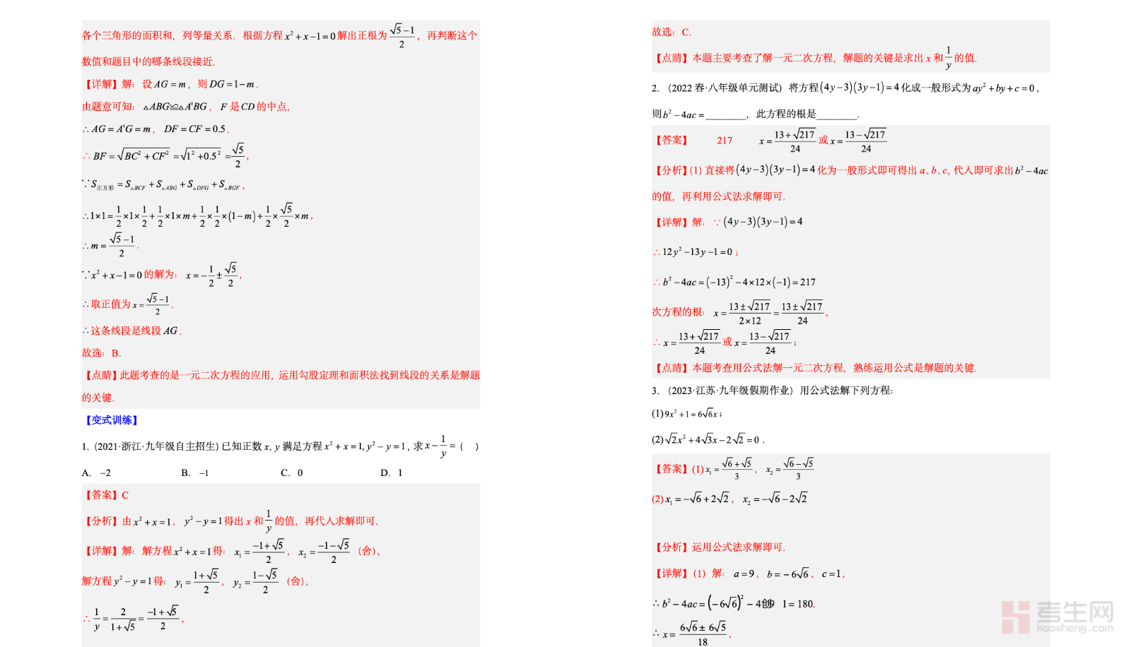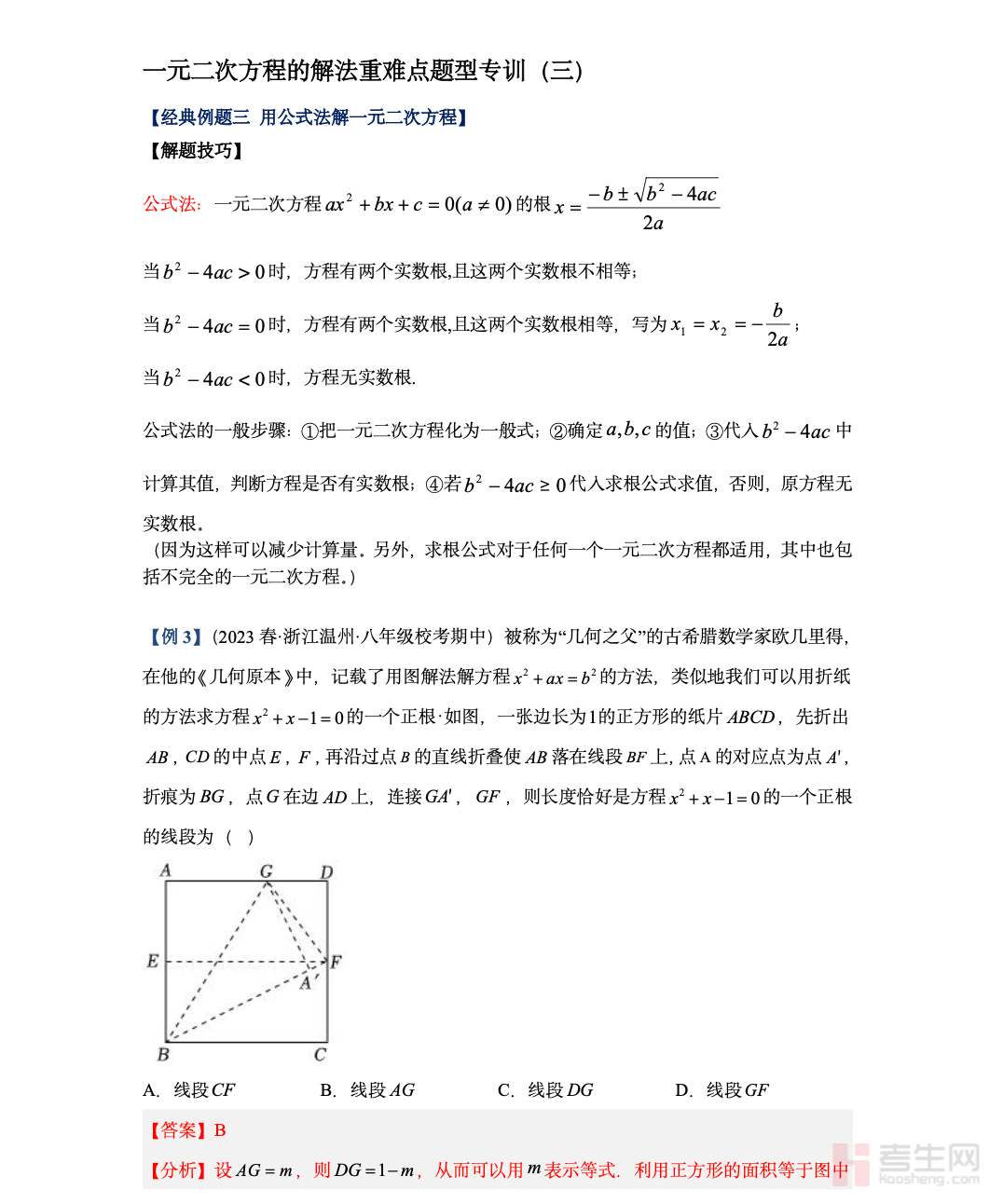 本文档是适配九年级一元二次方程学习的专项训练资料,严格依据教材重点与考试要求编撰,聚焦一元二次方程解法的重难点题型,全面覆盖直接开平方法、配方法、公式法、因式分解法等核心解法的对应题型。资料提炼各类解法的解题关键、步骤要点及易错易混点,搭配典型例题与针对性训练,摒弃冗余内容,条理清晰、重点突出,兼顾基础巩固与题型突破。适配九年级同步练习、单元复习及考前专项攻坚,助力学生吃透解法技巧,熟练应对各类重难点题型,夯实数学基础,提升解题准确率与应试能力,是九年级一元二次方程学习的必备实用资料。
