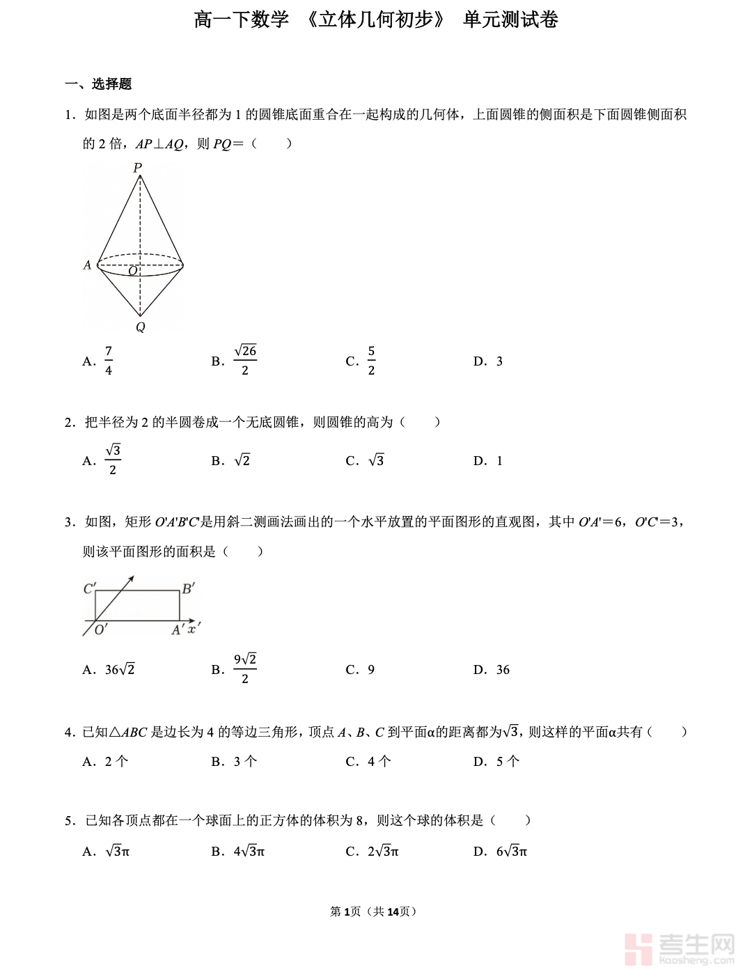 本文档是适配高一下数学《立体几何初步》单元的专项测试卷,严格依据人教版教材重难点及课程标准编撰,全面覆盖本单元核心考点,包括空间几何体的结构特征、表面积与体积计算、空间点线面的位置关系、线面平行与垂直的判定及性质等。试卷题型贴合单元验收标准,涵盖选择题、填空题、解答题,难度梯度合理,兼顾基础识记与能力提升,精准对接课堂高频考法。可用于学生自主检测、查漏补缺,也可作为教师课堂检测、学情反馈的实用素材,助力学生梳理立体几何知识脉络,提升空间想象能力与解题运算能力,是高一下数学《立体几何初步》单元复习与检测的必备资料。