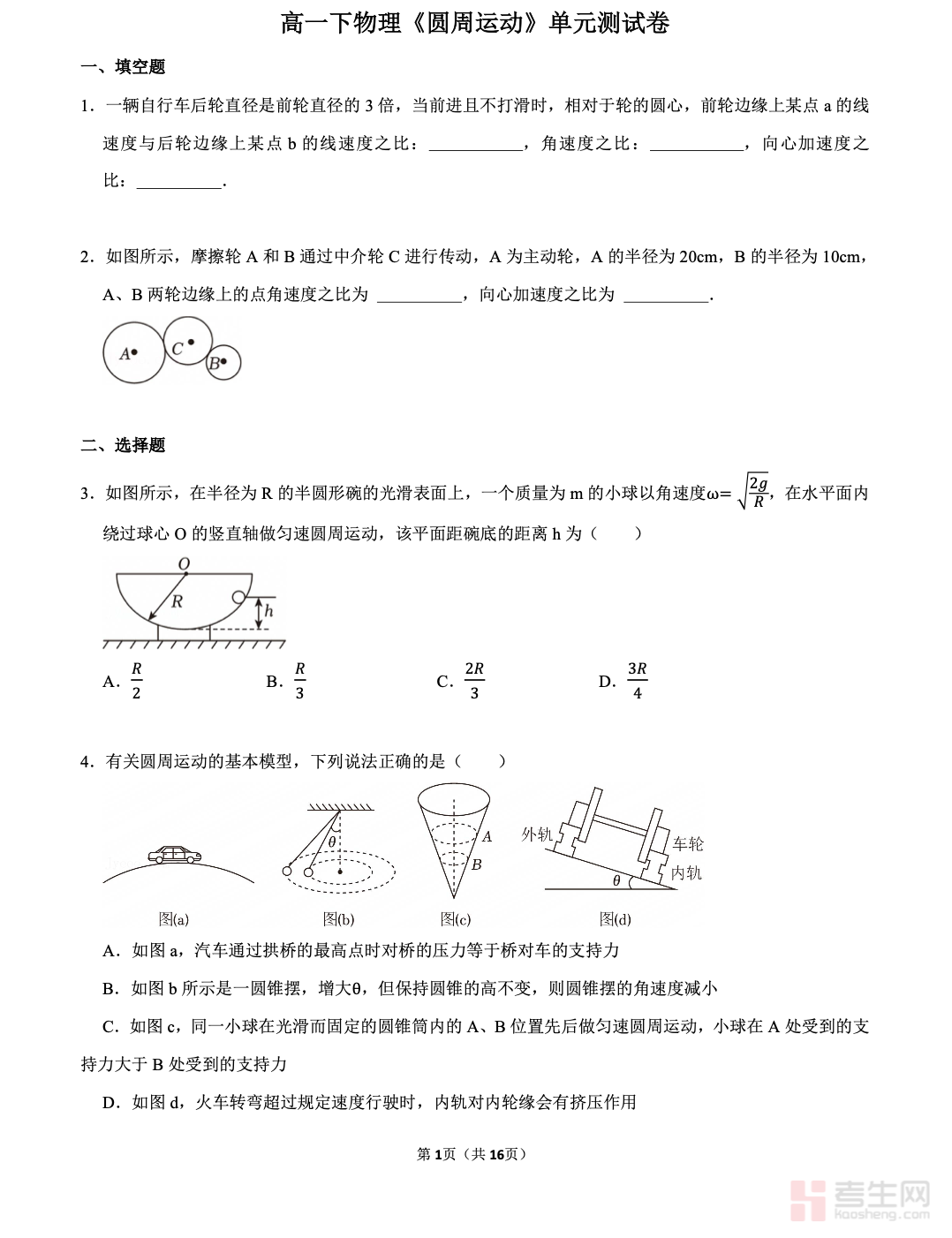本文档是适配高一下物理《抛体运动》单元的专项测试卷,严格依据人教版教材重难点与课程标准编写,全面覆盖曲线运动条件、运动的合成与分解、平抛运动规律、斜抛运动基本分析等核心考点。试卷题型丰富,包含选择题、填空题、实验题、计算题,难度梯度合理,注重基础理解与规律应用,贴合课堂练习与单元测评要求。题目紧扣高频考法,侧重过程分析与公式应用,可用于学生自主检测、查漏补缺,也可作为教师单元验收、学情反馈使用。帮助学生巩固抛体运动解题思路,提升运动分解与计算能力,是高一下物理抛体运动单元复习与检测的实用资料。