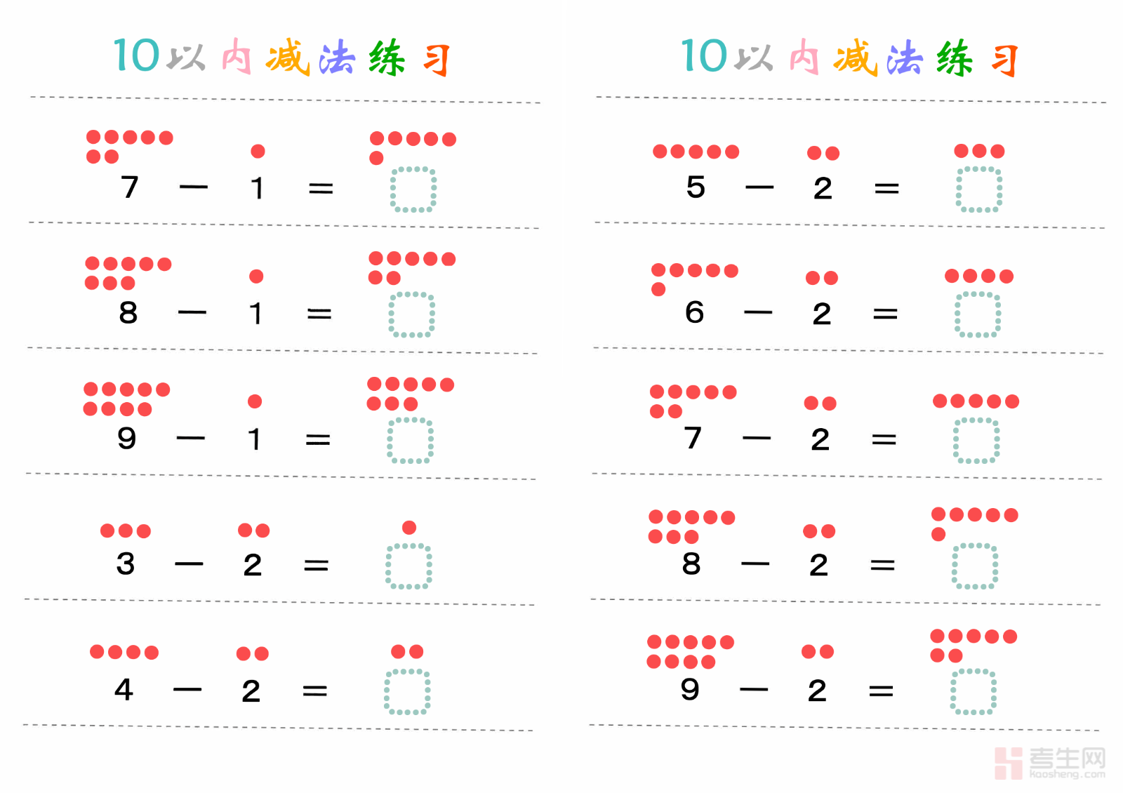 本文档为【幼小衔接】数学 10 以内减法练习题,专为幼小衔接及幼儿园大班孩子设计,聚焦 10 以内减法基础运算,贴合低龄儿童数学启蒙节奏。内容由浅入深,题型清晰简洁、题量适中,帮助孩子巩固减法概念,提高计算速度与准确率,培养数感和数学思维。练习页面排版工整、易于书写,适合课堂练习、家庭作业、每日口算打卡使用,可有效提升孩子运算熟练度,为进入小学打下扎实计算基础。实用性强、使用方便,是幼小衔接阶段数学减法训练的优质练习资料。