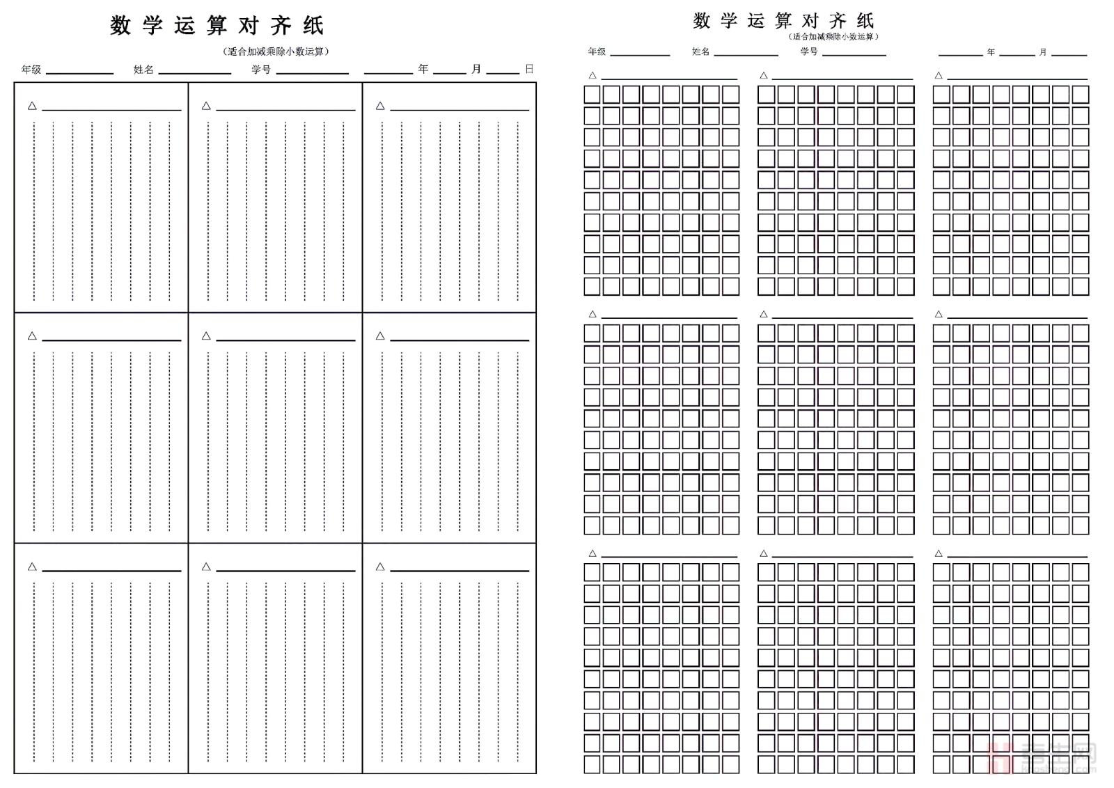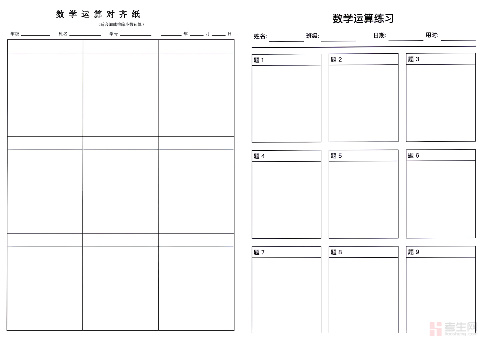 本文档为【幼小衔接】数学运算对齐练习纸,专为幼儿园大班及幼小衔接阶段孩子设计,专注提升竖式计算时的数位对齐能力。练习纸格式规范、线条清晰,帮助孩子养成个位、十位对齐的良好书写习惯,减少计算错误。内容贴合小学低年级运算入门要求,适合加减法基础练习与巩固,页面整洁易书写,方便孩子使用和家长辅导。可用于课堂训练、家庭作业、日常计算练习,有效提升孩子书写规范性与计算准确率,为顺利过渡小学数学学习打下扎实基础,是实用性强的幼小衔接数学练习资料。