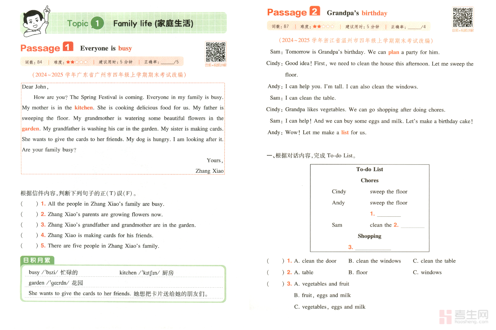 本文档为 2026 版第 5 次一本英语阅读真题 80 篇(4 年级),专为小学四年级学生打造,依据新课标与考试趋势全新升级。精选全国优质真题 80 篇,覆盖校园生活、日常交际、动物自然、传统文化等高频话题,难度循序渐进,贴合四年级英语学习与考试要求。每篇标注难度、词数与建议用时,配套音频朗读、视频讲解、词汇积累、全文翻译与详细解析,帮助孩子掌握答题技巧、提升阅读速度与正确率。资料排版清晰、使用便捷,适合日常训练、单元巩固、考前冲刺使用,系统提升阅读理解与语言运用能力,是四年级英语阅读提分的实用专项资料。