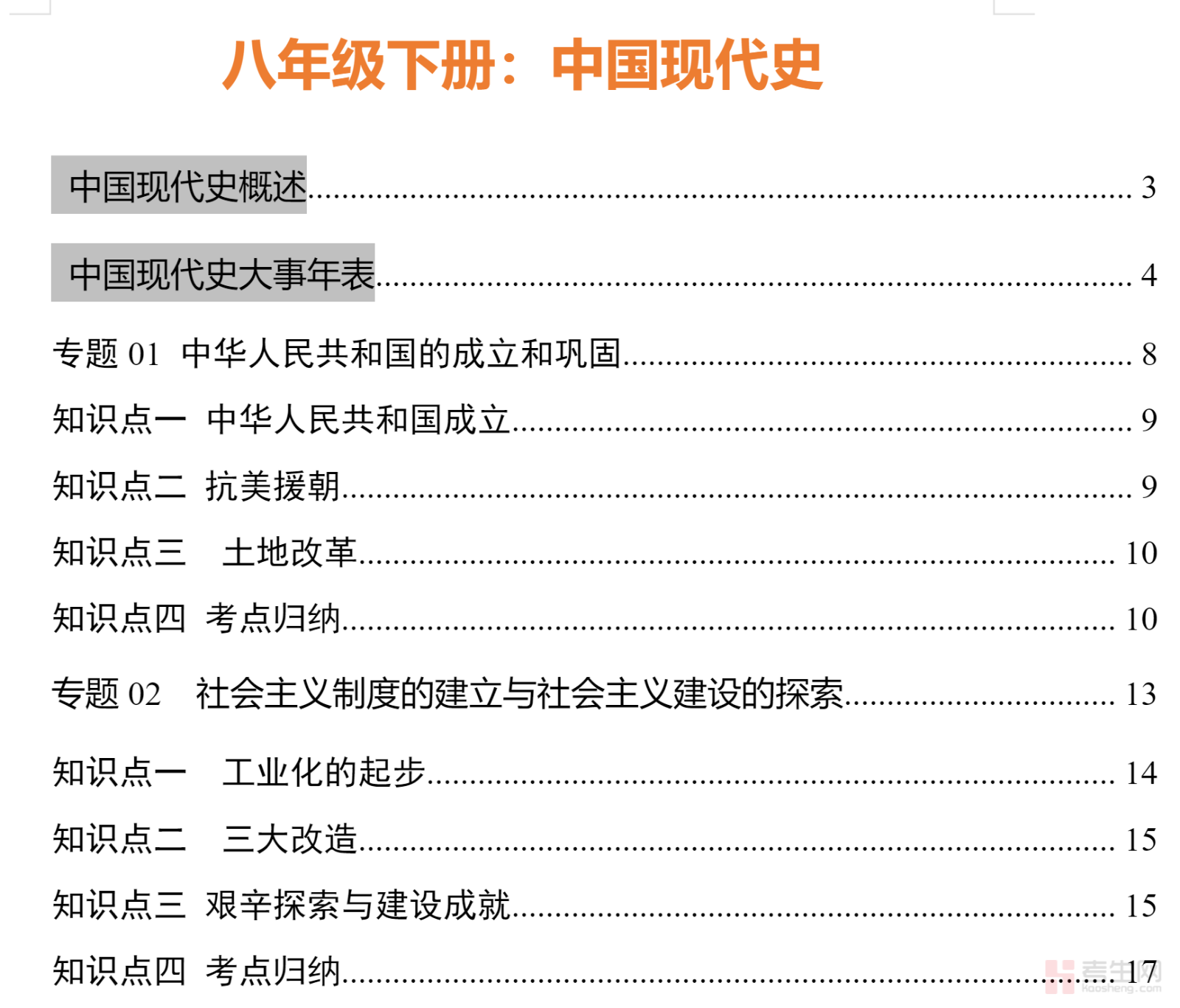 中国现代史八年级下册历史知识总结