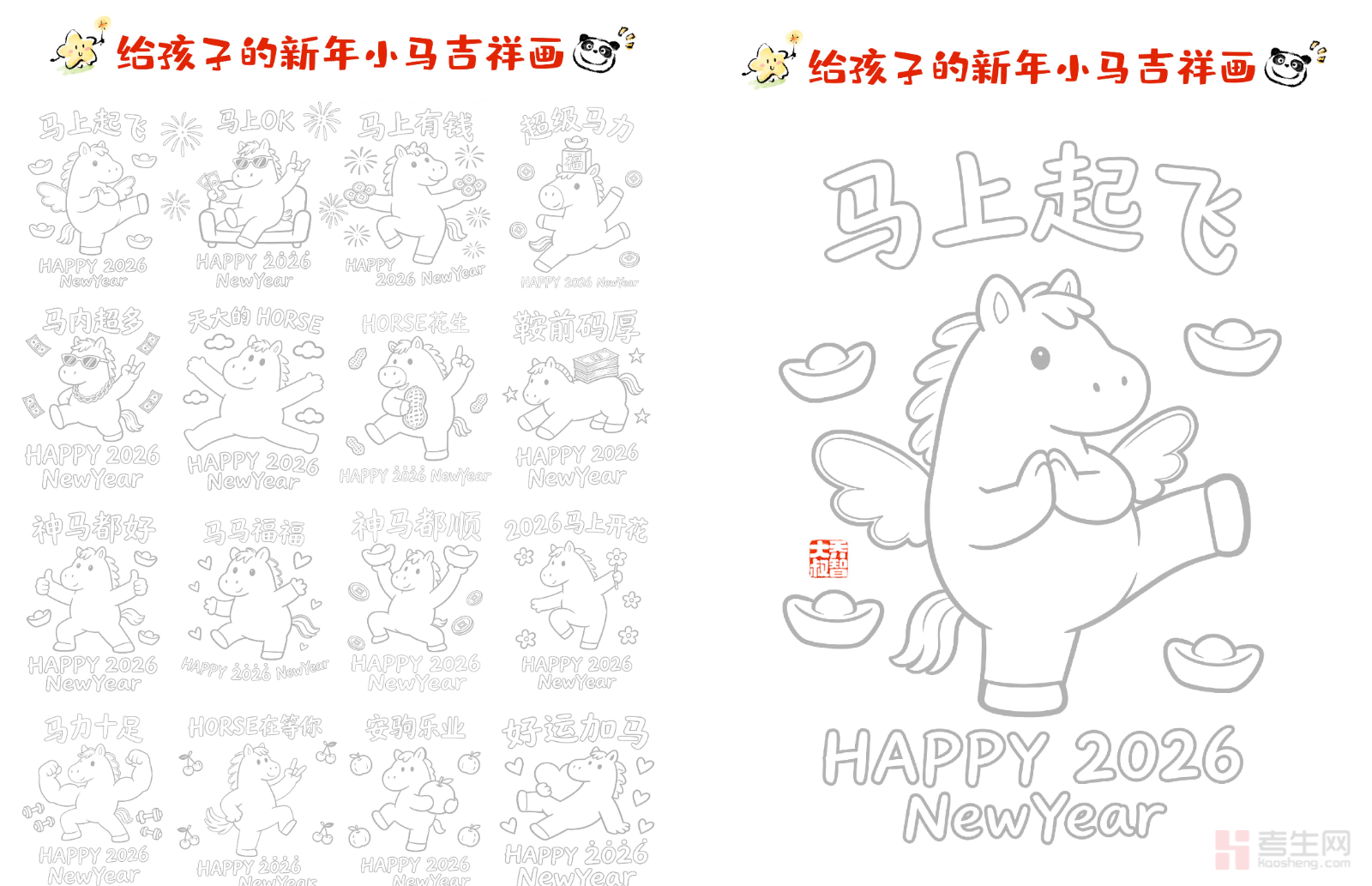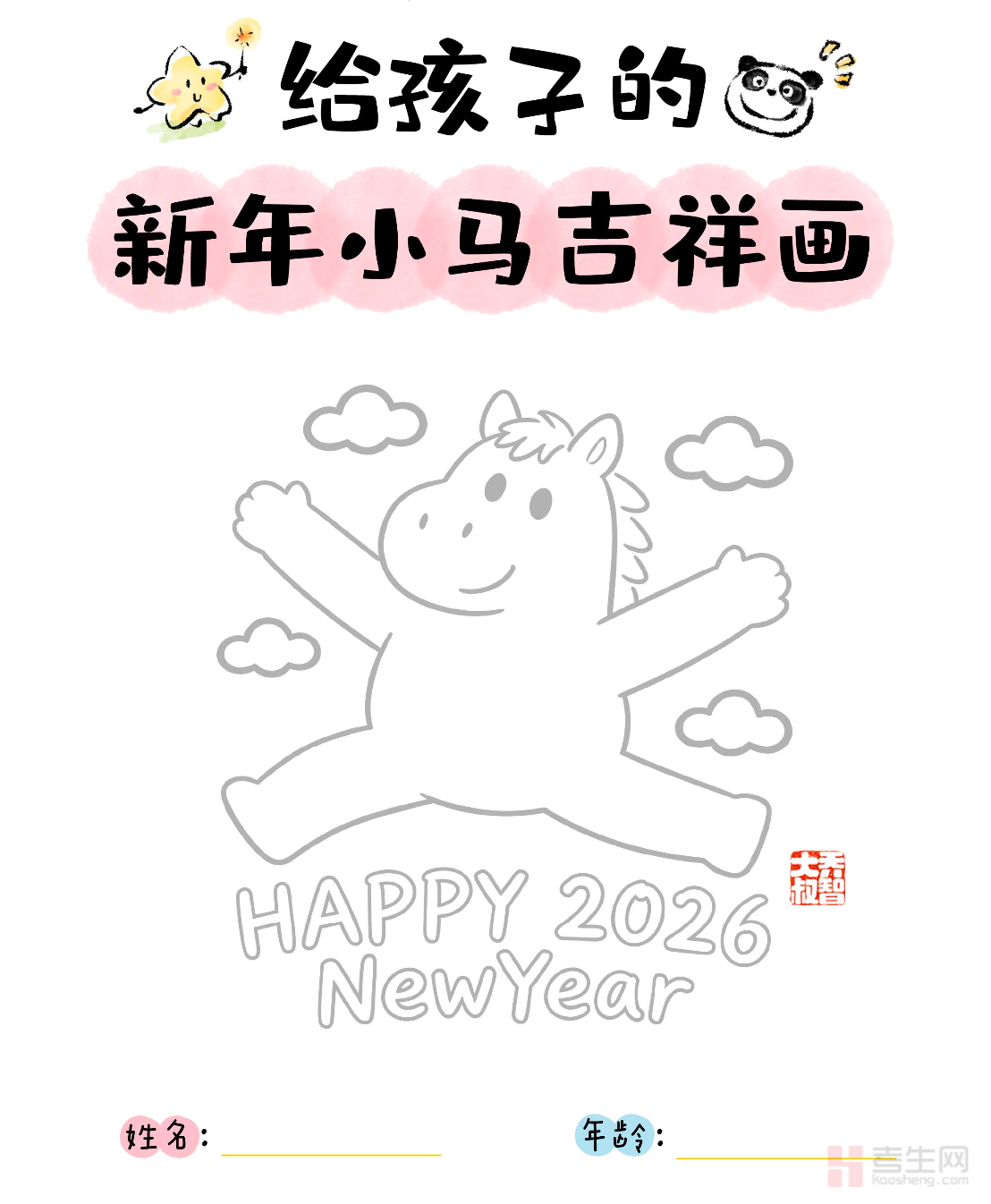 本文档为《给孩子的新年小马吉祥画|大叔手绘》,是专为孩子打造的马年新年主题手绘吉祥画。由大叔原创手绘,画面以可爱小马、新年元素、吉祥纹样为主,线条柔和清晰、造型喜庆讨喜,充满新年氛围与美好寓意。作品风格童趣十足,适合孩子欣赏、涂色或装饰使用,既能感受新年喜气,又能培养孩子的审美与动手兴趣。可直接打印,方便亲子互动、幼儿园美术活动、新年手工创作,让孩子在画画中迎接马年,收获平安喜乐,是兼具颜值与寓意的儿童新年手绘素材。