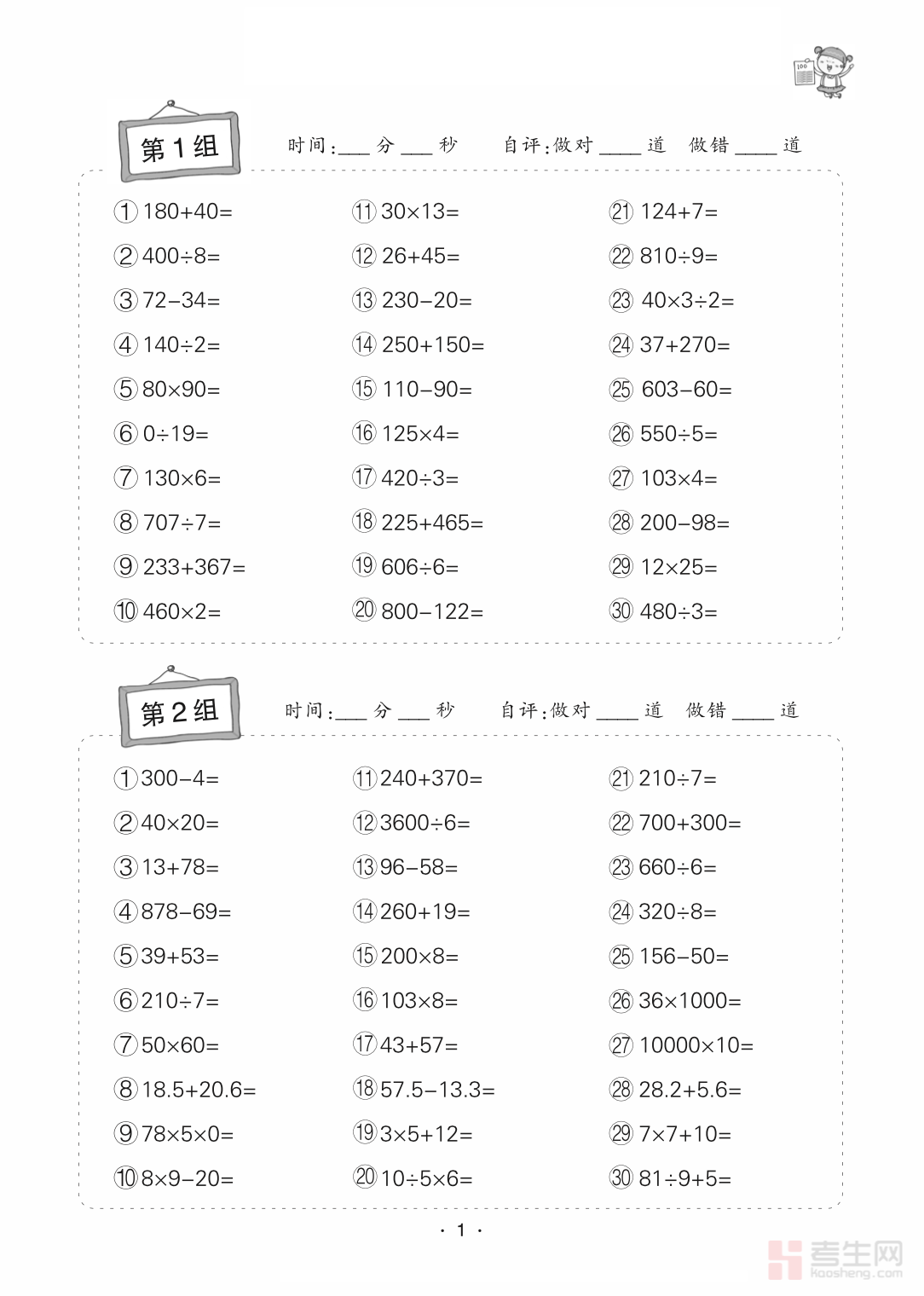 本文档为状元天天练数学口算题卡(四年级),专为小学四年级学生设计,贴合四年级数学学习重点与日常练习需求。内容包含整数四则运算、简便计算、小数初步认识等口算题型,题目编排由浅入深、题量适中,适合每日坚持练习。通过每日定时训练,帮助学生提升口算速度与正确率,夯实计算基础,培养认真细致的做题习惯。资料排版清晰、方便打印,适用于课堂练习、课后巩固、家庭辅导等场景,长期使用可有效提高数学运算能力,为后续学习打下扎实基础,是四年级数学口算日常练习的实用题卡资料。