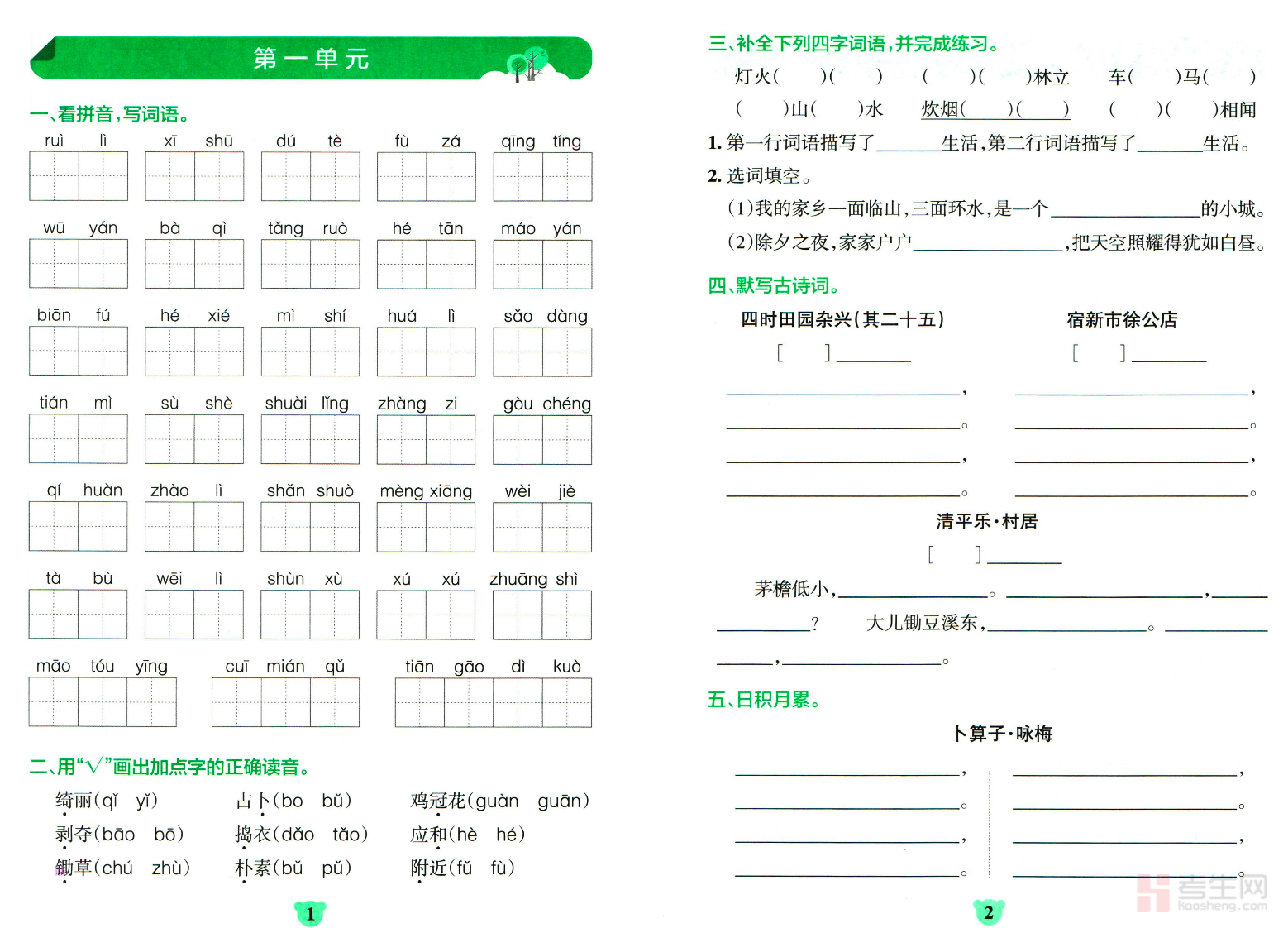 本文档为看拼音写词语 + 按课文内容填空(四年级语文下册),同步四年级下册语文教材知识点,紧扣课内基础与常考题型。内容包含看拼音写词语、易错字词辨析、重点句默写、按课文内容填空等练习,贴合课堂练习与单元检测要求,难度适中、针对性强。既能强化生字词书写与运用能力,又能巩固课文背诵、理解与积累,提升语文基本功。练习排版清晰、题量合理,方便打印使用,适用于课堂练习、课后巩固、家庭辅导及考前复习,是四年级下册语文夯实基础、提高成绩的实用学习资料。