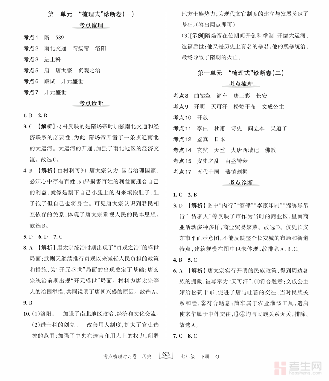 本文档为王朝霞 单元活页卷 历史 人教版 七年级下册(含答案解析),同步人教版七年级下册历史教材,贴合初中课堂教学与单元检测需求。试卷采用活页设计,便于拆分练习、随堂测试与归档整理。题型全面,覆盖选择题、材料分析题、简答题等常考题型,紧扣各朝代政治、经济、文化、民族关系等核心知识点,重点突出、难度适中,贴合考试方向。每套试卷均配有完整答案解析,讲解清晰,方便学生自主核对、查漏补缺,巩固知识、理清答题思路。适用于单元自测、课后巩固、期中期末复习与考前模拟,是七年级下册历史夯实基础、提升应试能力的实用试卷资料。