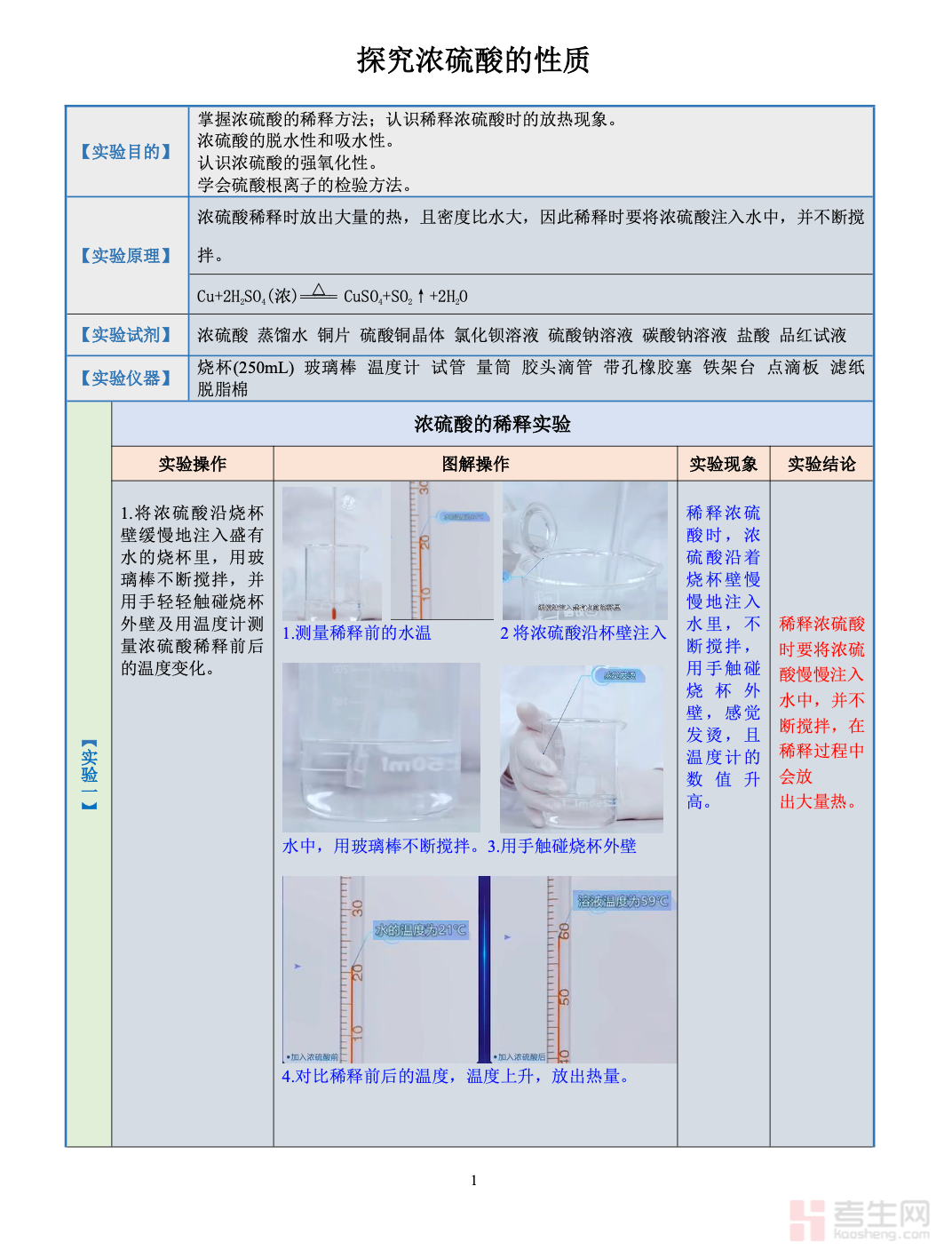 本文档为高一下实验母题:02 探究浓硫酸的性质,针对高一化学重点实验专题进行系统梳理。内容围绕浓硫酸的吸水性、脱水性、强氧化性三大核心特性展开,详细讲解实验原理、操作步骤、实验现象、反应方程式及安全注意事项。以实验母题形式归纳典型考法、易错点与答题模板,帮助学生理解实验逻辑,规范实验表述,提升实验题解题能力。资料贴合教材要求与考试方向,重点突出、实用性强,适用于课堂学习、实验复习、专题训练及考前巩固,是高一化学实验模块夯实基础、高效提分的实用学习资料。