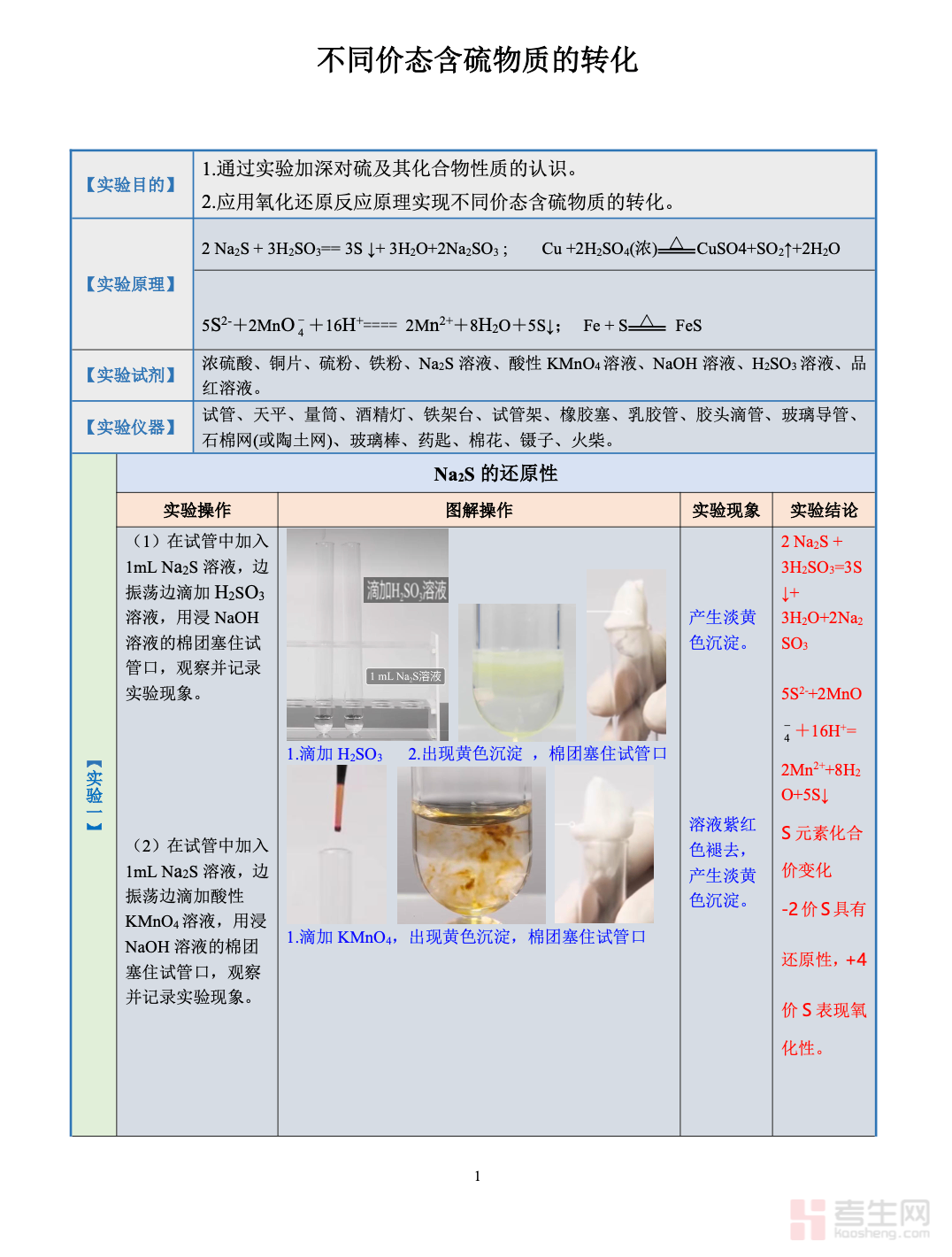 本文档为高一下实验母题:03 不同价态含硫物质的转化,围绕高一化学硫及其化合物核心知识展开专项梳理。内容系统讲解不同价态硫元素之间的转化关系、反应原理、实验现象与化学方程式,重点梳理氧化还原规律、转化路径及典型实验操作。通过实验母题形式归纳常考题型、易错点与答题思路,帮助学生理解物质转化逻辑,掌握实验分析与规范作答技巧。资料贴合教材内容与考试方向,结构清晰、实用性强,适用于课堂学习、实验复习、专题训练及考前巩固,是高一化学夯实基础、突破硫转化难点的实用学习资料。