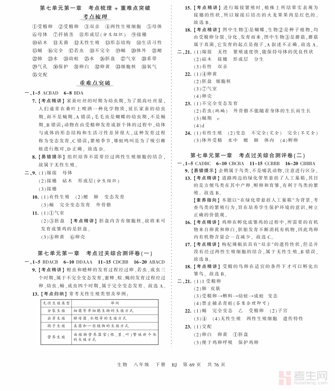 本书为王朝霞 单元活页卷 生物 人教版 八年级下册(含答案解析),同步人教版八年级下册生物教材编写,采用活页装订设计,拆分便捷,适合单元检测、随堂练习与收纳整理。试卷紧扣教材核心考点,涵盖生物的生殖和发育、遗传与变异、生物进化、传染病和免疫、健康生活等重点内容,题型规范、难度梯度合理,兼顾基础巩固与能力提升。配套完整答案与详细解析,方便学生自主订正、理清解题思路、查漏补缺。内容贴合课堂教学与考试要求,适用于单元自测、课后巩固、期中期末复习与考前模拟,助力学生夯实生物基础、提升学科素养与应试能力。