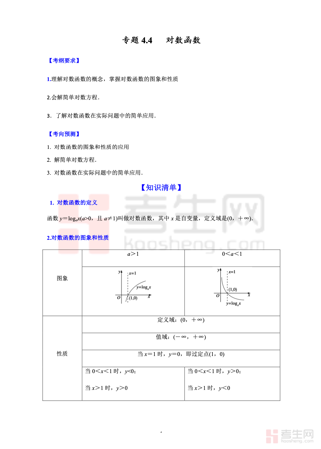 4.3 对数函数 高考数学一轮艺体生基础复习讲义(新高考)(教师版),专为艺体生高考数学一轮复习教师授课设计,贴合新高考命题导向,聚焦对数函数基础考点。内容涵盖对数函数的概念、图像与性质、单调性、奇偶性及基础应用,兼顾知识点梳理与授课实用性,包含详细知识点解析、典型例题精讲、解题思路拆解及易错点警示。讲义适配艺体生基础薄弱的特点,简化复杂推导,突出授课重点与基础题型,配套完整解题步骤、答案解析及授课提示,方便教师高效备课、精准授课,助力艺体生一轮夯实对数函数基础,提升基础得分能力,适配新高考艺体生数学复习节奏。