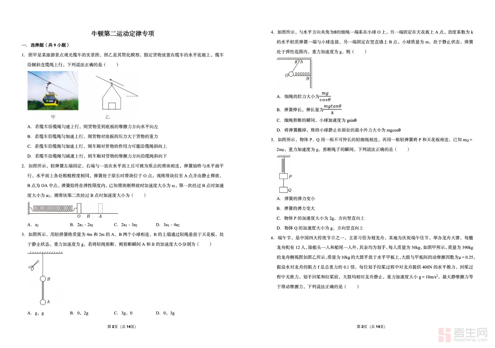牛顿第二运动定律专项(含答案解析),聚焦高中物理力学核心考点,系统围绕牛顿第二定律的概念、公式、适用条件与典型题型展开练习。内容涵盖受力分析、加速度计算、连接体问题、瞬时问题等常考类型,题目由基础到提升,梯度合理,贴合高中日常练习与考试要求。每道题目均配有详细答案解析,清晰拆解解题思路、步骤与易错点,帮助学生理解规律、掌握方法、巩固应用。适合高一新课学习、单元巩固及高三基础复习使用,助力学生强化力学基础,提升解题能力。