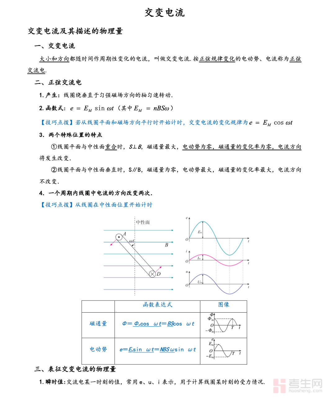 高中物理 交变电流,围绕高中电磁学重点模块系统整理,涵盖交变电流的产生、变化规律、瞬时值表达式、有效值计算、峰值与有效值的区别,以及变压器原理、远距离输电等核心知识点。资料紧扣教材与高考考纲,概念清晰、重点突出,对图像、公式、典型题型进行细致梳理,搭配常见易错点与解题思路,帮助学生理解交变电流的特点与应用。内容实用性强,适合新课学习、单元复习及高三一轮巩固使用,助力学生夯实电磁学基础,提升解题与应试能力。