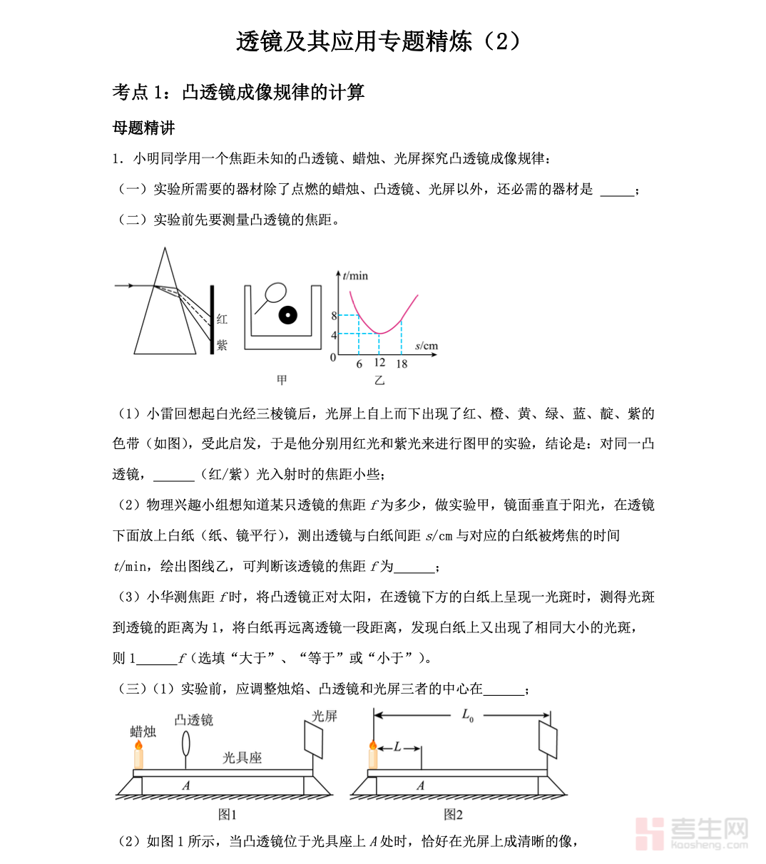 初三物理 透镜及其应用专题精炼,围绕初三物理光学核心考点系统整理,涵盖透镜的种类、对光的作用、凸透镜成像规律、凸透镜成像实验、眼睛与眼镜、显微镜和望远镜等重点内容。资料紧扣中考考纲,聚焦实验探究、成像规律判断、光路作图、生活应用等高频题型,对重点规律、易错点、解题技巧进行精炼归纳,搭配典型例题与专项练习,帮助学生快速掌握核心知识。内容重点突出、实用性强,适合新课巩固、单元复习及中考基础冲刺使用,助力学生夯实光学基础,提升实验题、作图题与综合应用题得分能力。