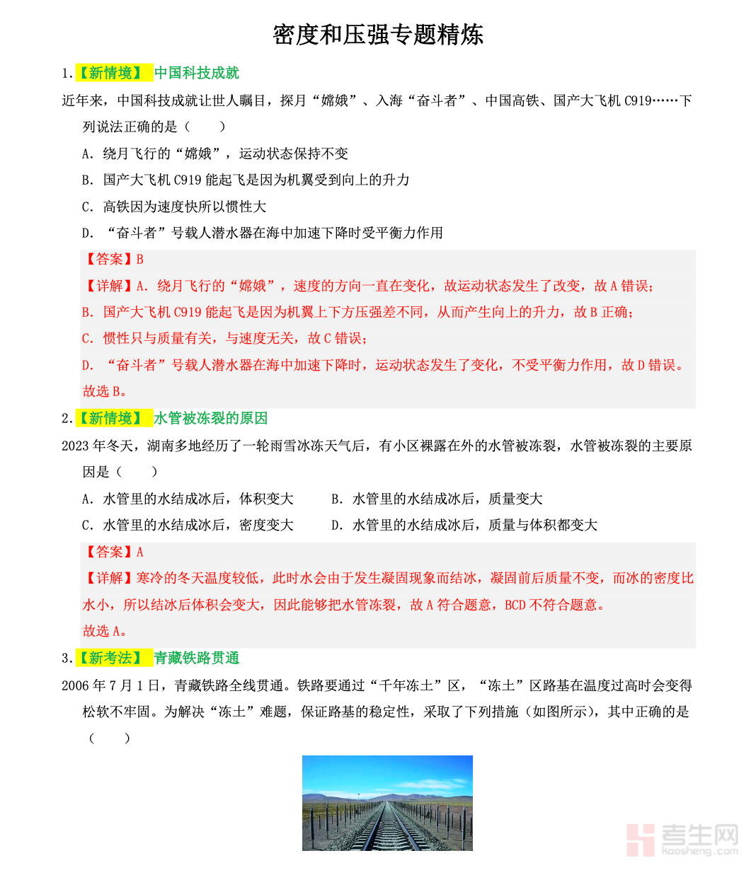 初三物理 密度和压强精炼,是针对初三物理力学重点模块的专项复习资料。内容整合密度概念、测量实验、公式计算与固体、液体、大气压强、流体压强等核心知识点,系统梳理公式应用、实验操作、图像分析及综合计算题解题思路。资料紧扣中考考纲,突出高频考点与易错点,搭配典型例题与针对性练习,帮助学生理清知识联系,掌握解题技巧。内容精炼实用、重点清晰,适合新课巩固、单元复习及中考基础冲刺,助力学生夯实力学核心基础,提升实验题与计算题得分能力。