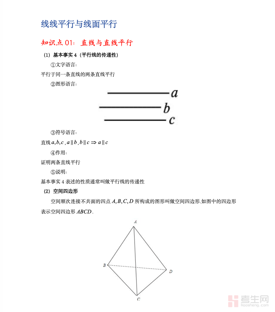 高中数学专题 —— 线线平行与线面平行,围绕高中立体几何核心考点展开,系统讲解空间中线线平行、线面平行的判定定理与性质定理。内容涵盖定理理解、几何模型分析、常见辅助线作法、典型例题解析及解题步骤归纳,重点突破证明题的逻辑思路与书写规范。资料紧扣高考考纲,针对高频题型进行专项训练,帮助学生掌握空间平行关系的转化方法,提升空间想象与逻辑推理能力。内容由浅入深、重点突出、实用性强,适合新课学习、单元巩固及高三一轮复习使用,助力学生扎实掌握立体几何基础,提高证明题得分率。