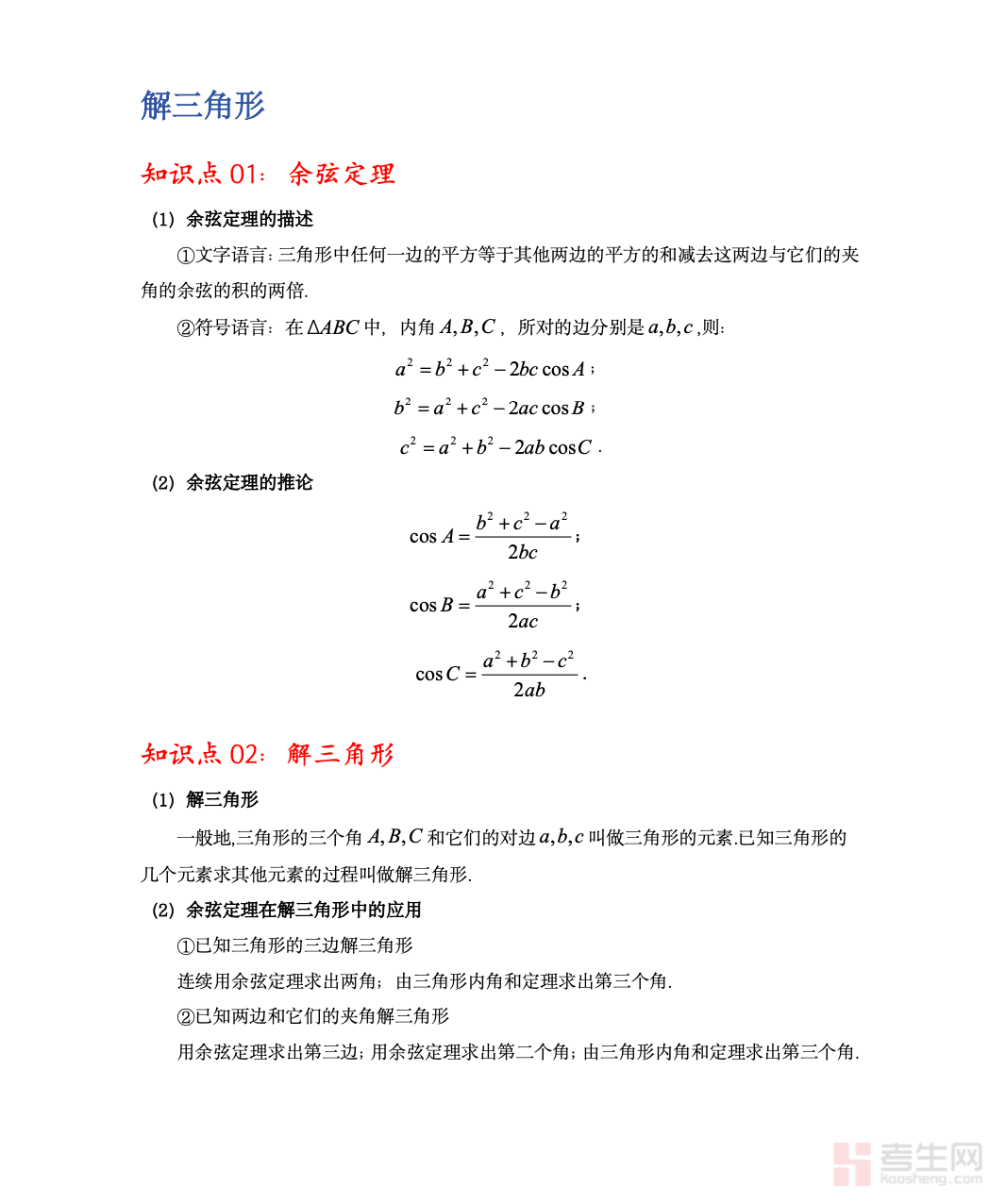 高中数学专题 —— 解三角形,围绕高中数学三角函数核心考点展开,系统梳理正弦定理、余弦定理、面积公式、边角互化等关键知识点。内容紧扣高考考情,对常见题型、公式选用、易错点与解题思路进行归纳总结,结合典型例题讲解如何快速建立边角关系、处理实际应用问题。专题注重方法提炼与计算规范,帮助学生掌握解题技巧,提升综合运用能力。内容由浅入深、重点突出、实用性强,适合新课巩固、单元复习及高三备考使用,助力学生扎实掌握解三角形知识,提高选择、填空及解答题得分率。