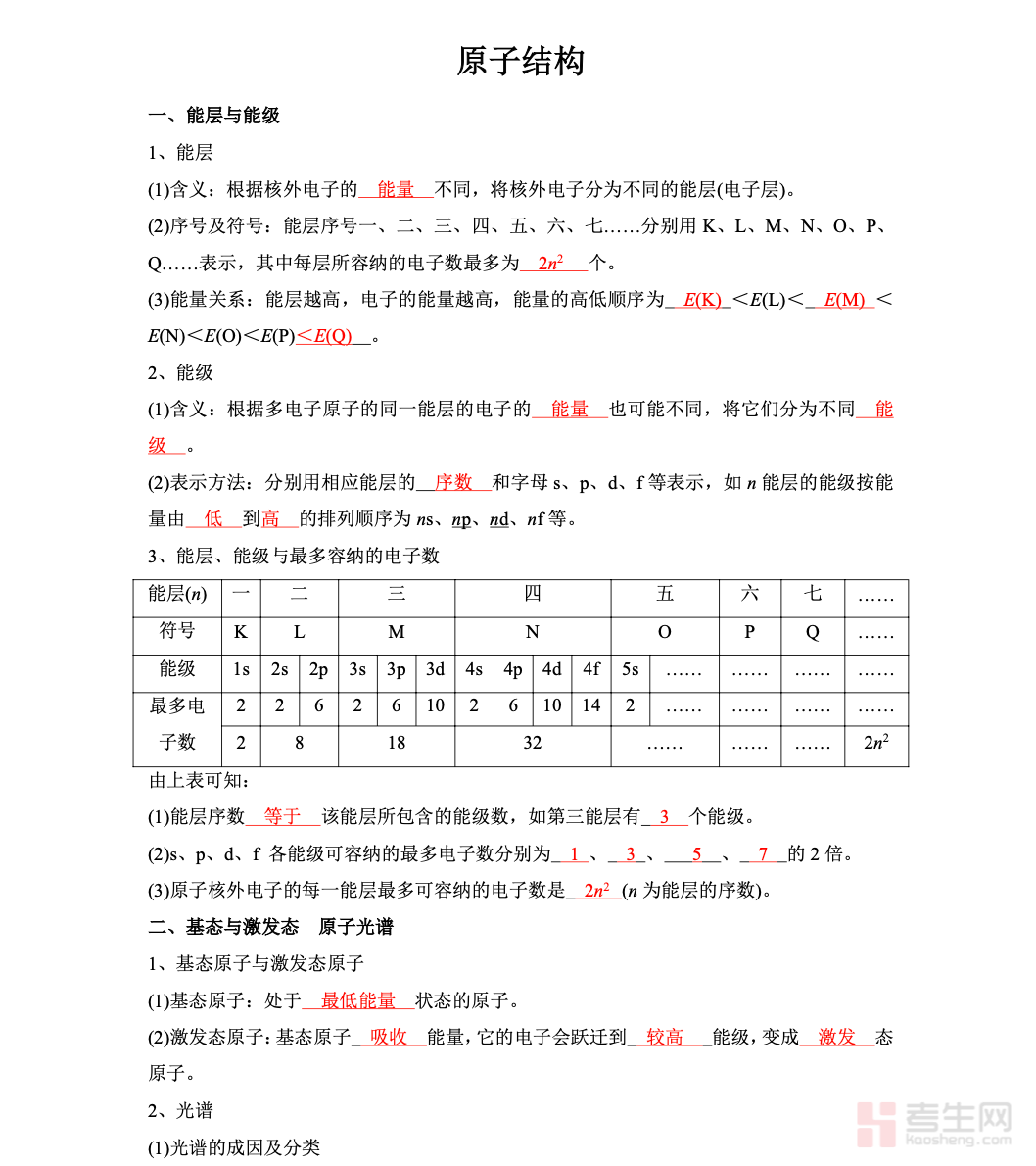 高中化学专题 —— 原子结构,是物质结构与元素周期律的基础核心内容,系统讲解原子的构成、核素、同位素、质子数、中子数与质量数之间的关系。专题重点梳理核外电子排布规律、原子结构示意图、电子层与能级的基本概念,结合常见元素实例强化理解。内容紧扣教材与高考考纲,覆盖微粒数目计算、同位素判断、电子排布应用等高频考点,搭配典型例题与解题技巧,明确易错点。知识点条理清晰、重点突出,适合新课学习、单元复习与一轮巩固,帮助学生扎实掌握原子结构知识,为元素周期表、元素性质等后续内容学习奠定基础。