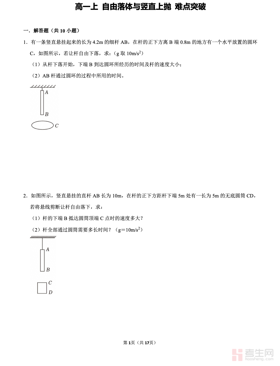 本专题紧扣高一物理必修一运动学核心,聚焦自由落体与竖直上抛两大匀变速直线运动模型的难点与易错点,系统拆解两类运动的规律应用与解题方法。内容重点突破重力加速度方向判断、竖直上抛全程法与分段法的灵活切换、运动对称性的应用,以及多过程问题的临界状态分析等高频痛点。通过典型例题分层剖析解题逻辑,配套针对性变式训练强化方法迁移,明确公式适用场景与易错提醒。专题结构清晰、实用性强,适配课堂同步巩固、单元难点攻关与考前方法复盘,帮助学生建立规范的运动分析思维,扎实掌握两类运动的核心解题技巧。