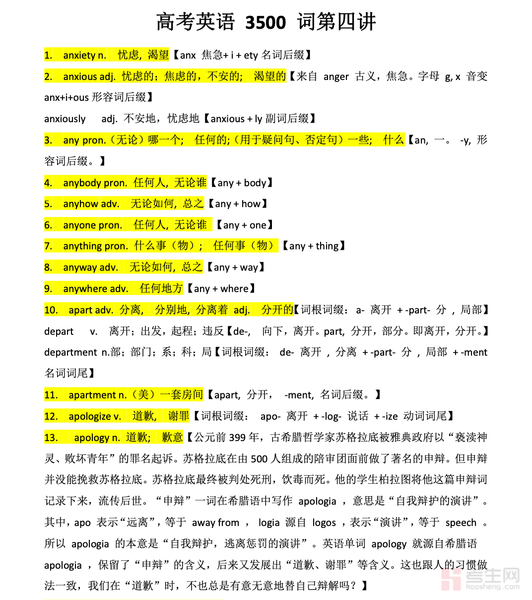 高考英语 3500 词第三讲,专为高中英语单词系统学习设计,聚焦高考大纲要求的 3500 核心词汇,按阶段精讲精练。本讲延续词汇体系,重点讲解高频核心单词、固定搭配、词性转换、词义辨析及真题例句,帮助学生在语境中理解记忆,提升词汇运用能力。内容贴合高考命题趋势,突出常考词义与用法,兼顾阅读理解、完形填空、写作等多题型需求。讲解清晰、重点突出,适合高一打基础、高二巩固积累、高三系统复习使用,助力学生稳步扩大词汇量,夯实英语基础,提升整体应试水平。