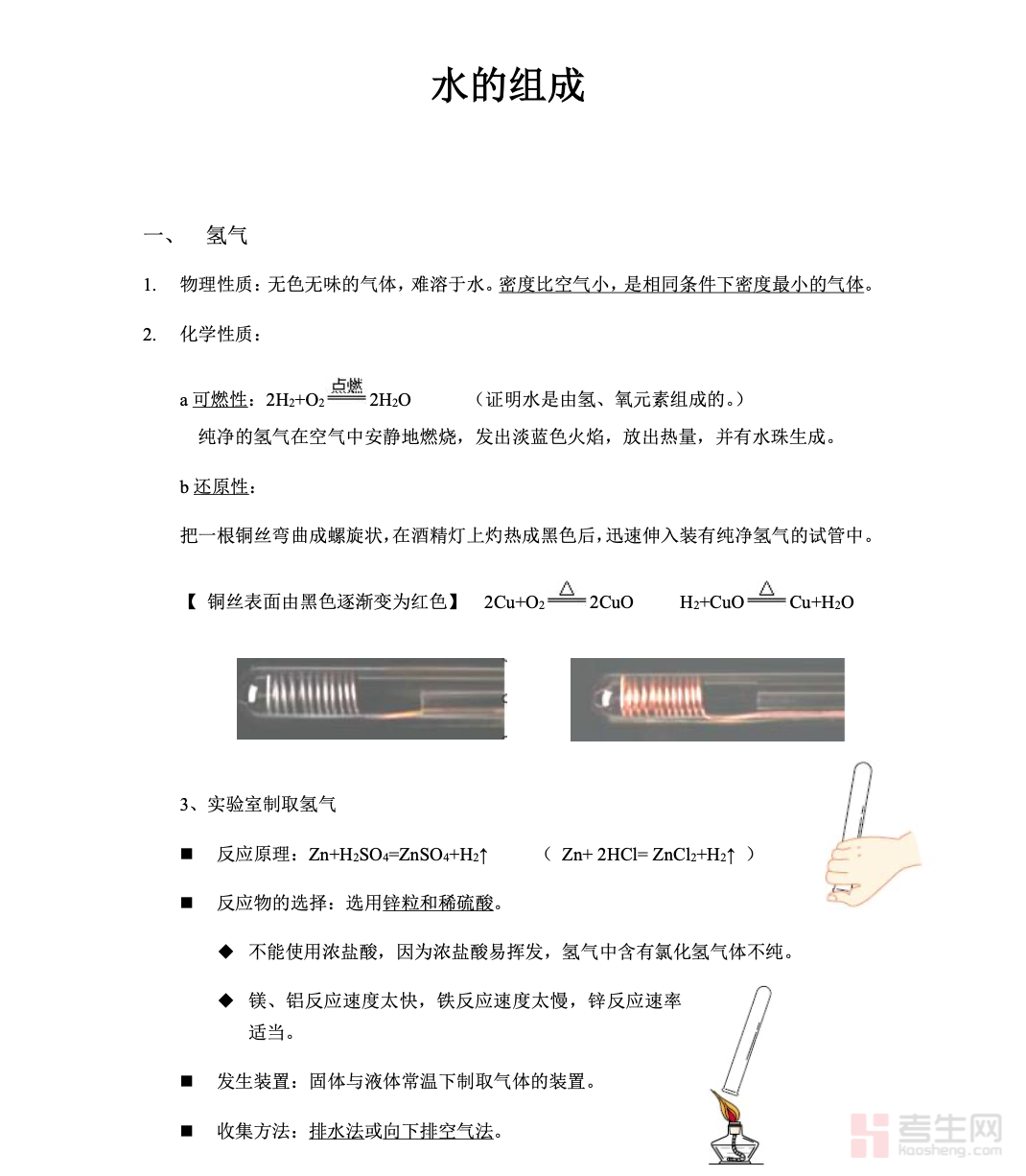 本资料为初中化学 水的组成专题知识点总结,紧扣初中化学教材与中考考点,系统讲解水的组成与性质相关核心内容。重点梳理水的电解实验原理、现象、结论,氢气与氧气的体积比、质量比,以及水的元素组成、化学式推导等基础知识点,同时包含氢气的性质、检验方法与实验注意事项。内容简洁易懂、重点突出,搭配关键结论与易错提醒,帮助学生快速理解、准确记忆。适合课堂同步学习、课后巩固、单元复习及考前查漏补缺,助力学生扎实掌握水的组成相关知识,提升化学基础与解题能力,为后续溶液、酸碱盐等内容学习奠定基础。