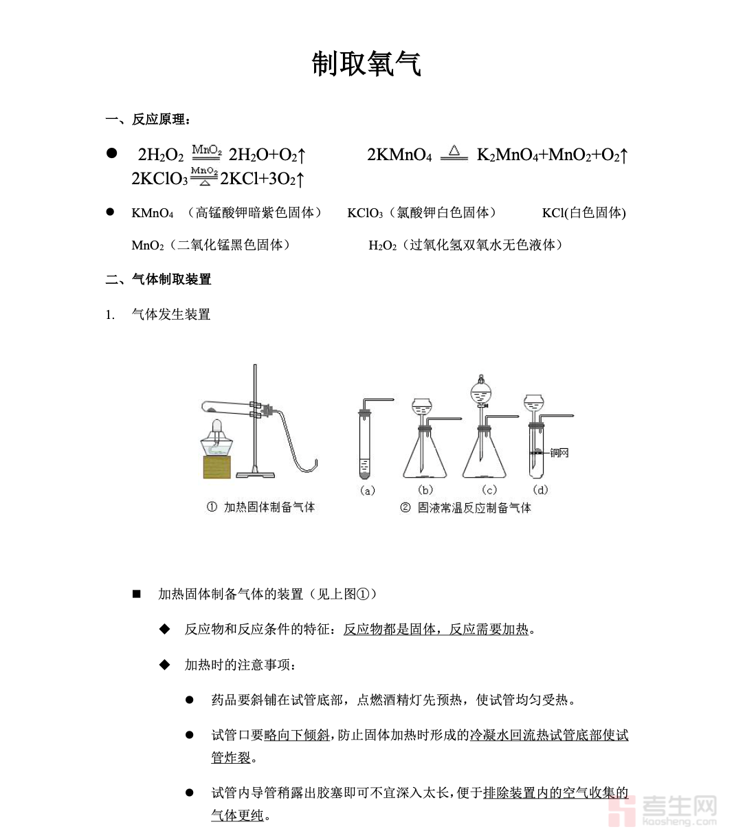 本资料为初中化学 制取氧气专题知识点总结,紧扣教材与中考高频考点,聚焦实验室制取氧气的核心内容。系统讲解加热高锰酸钾、氯酸钾与二氧化锰、过氧化氢分解三种制备方法,详细梳理反应原理、实验装置、操作步骤、收集方法、检验与验满技巧,同时明确催化剂特点、注意事项及易错点。内容条理清晰、重点突出,配有规范流程与关键提示,便于理解与记忆。适合课堂同步学习、课后巩固、实验复习及考前查漏补缺,帮助学生扎实掌握气体制备思路,提升实验分析与解题能力,为初中化学实验学习打下坚实基础。