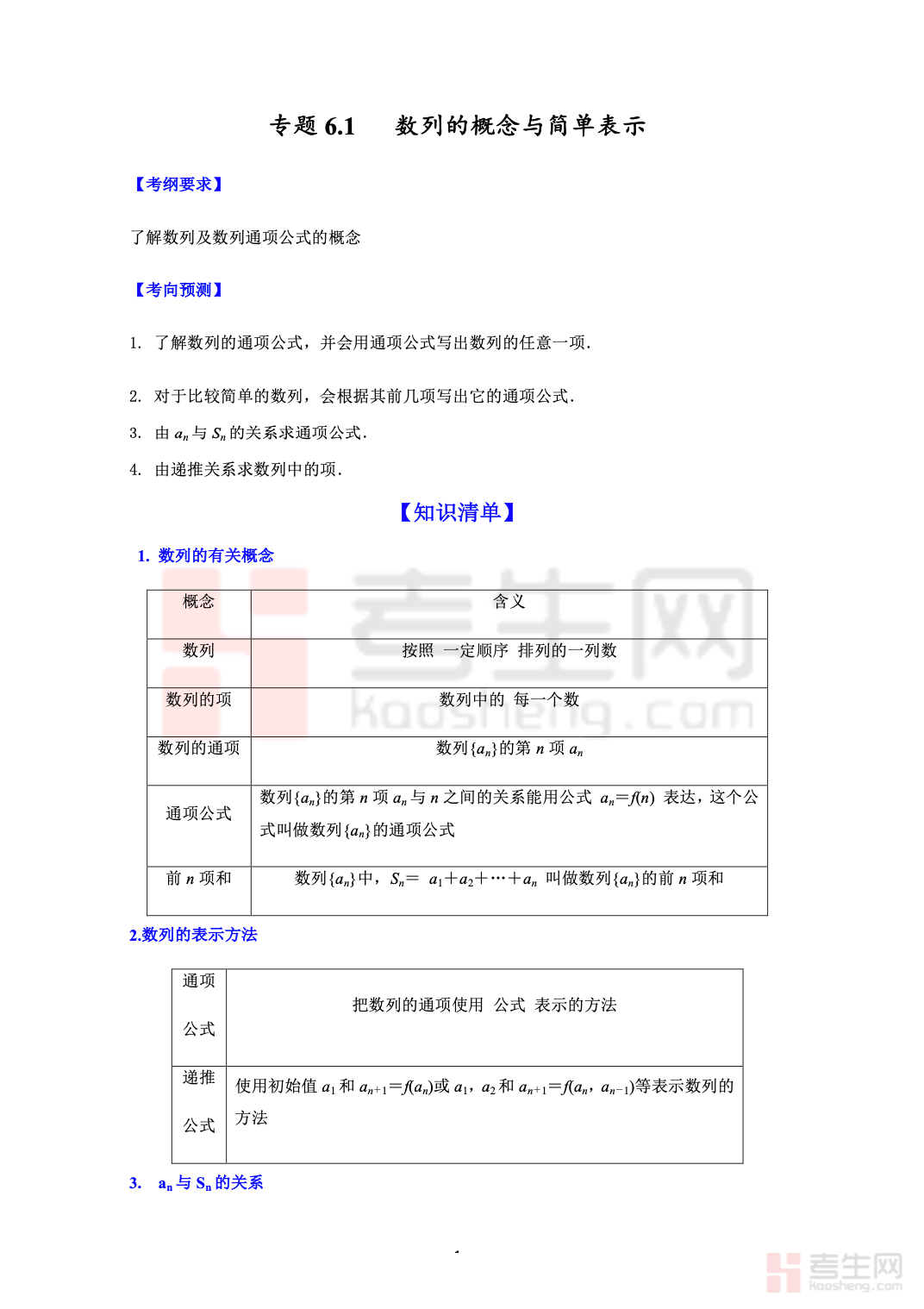 本资料为6.1 数列的概念与简单表示 高考数学一轮艺体生基础复习讲义(新高考)(教师版),专为艺术、体育类考生量身打造,贴合新高考考情与基础薄弱学生特点。内容紧扣数列核心考点,系统讲解数列定义、通项公式、递推公式、前 n 项和与通项关系等基础知识点,侧重简单题型与通法讲解,难度适中、循序渐进。讲义配备典型例题、步骤详解、易错点提示及配套练习,方便教师课堂教学、知识点梳理与针对性辅导。结构清晰、重点突出、实用性强,助力艺体生快速夯实数列基础,掌握解题思路,提升一轮复习效率,为高考数学备考提供实用、易懂的教学与复习支持。