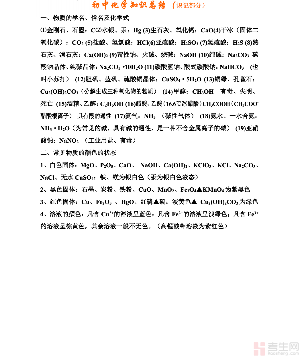 本资料为初中化学知识点总结,依据新课标与中考考纲系统梳理,覆盖物质构成、化学方程式、金属、溶液、酸碱盐、化学实验、气体制备、除杂鉴别等核心模块。内容条理清晰、重点突出,将零散知识整合为体系化考点,标注高频考点、易错点与关键规律,兼顾基础巩固与中考冲刺需求。资料语言简洁、便于理解记忆,搭配典型题型思路点拨,适合课前预习、课堂笔记、课后复习及中考一轮复习使用,帮助学生快速构建知识框架、夯实化学基础、提升解题能力,为初中化学学习与中考备考提供全面、高效的知识支持。